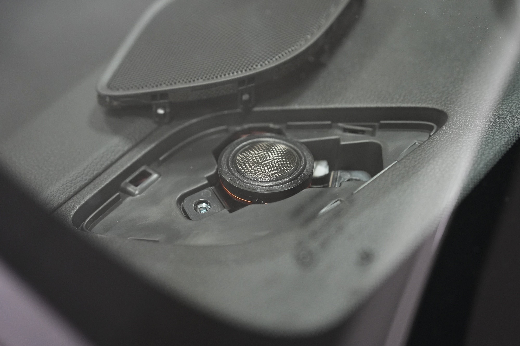 Výškové reproduktory jsme umístili na jejich originální pozici v A-sloupku. Pozice není kvůli směrování samozřejmě optimální, nicméně díky extrémní prostorovosti těchto reproduktorů a důkladnému naladění na DSP procesoru, si s tím dokážeme úspěšně poradit. Výsledku přispívá i zapojení v aktivním režimu každého reproduktoru zvlášť, takže můžeme lépe definovat pozici výškového reproduktoru.