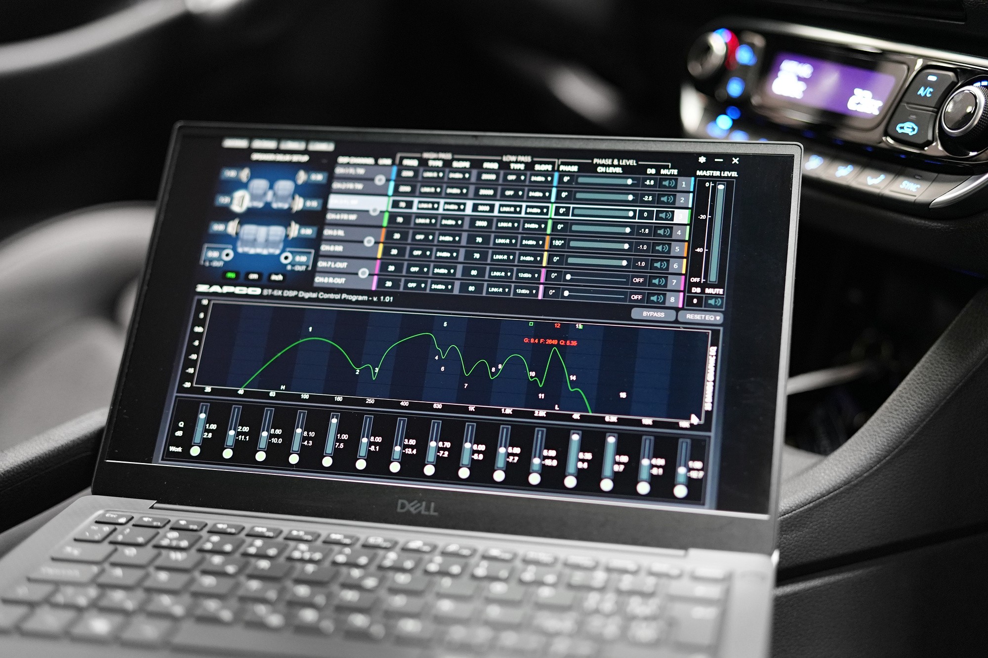 Nastává nejdůležitější část ozvučení a tím je nastavení zvuku. Interiér každého auta má unikátní akustiku a není ideální pro poslech hudby. Proto je nejprve nezbytné změřit pomocí kalibrovaného mikrofonu všechny nežádoucí efekty a překážky, které vznikají po cestě zvuku do našeho ucha. Výslednou ekvalizační křivku každého reproduktoru ovlivňuje spousta faktorů jako je zejména jeho pozice, prostor za reproduktorem, materiál koše reproduktoru, ale i překážky zvuku jako jsou sedačky, středový tunel nebo palubní deska. Měříme tedy postupně frekvenční odezvu každého reproduktoru zvlášť a výsledky následně zapisujeme do programu DSP procesoru.