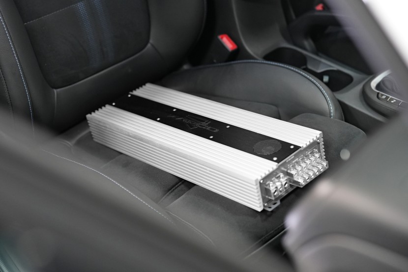 Důležitou roli v ozvučení tohoto vozu hraje samozřejmě i zesilovač amerického výrobce Zapco. Analogová třída A/B a sound quality vnitřní součástky zajistí vysoce věrný zvuk a integrovaný DSP procesor zase umožní detailní nastavení. Zapco je vždy záruka nejvyšší kvality a právě tu v dnešní instalaci potřebujeme nejvíce. Úctyhodné rozměry zesilovače nám naštěstí nezabránily jeho instalaci do dvojitého dna zavazadlového prostoru.