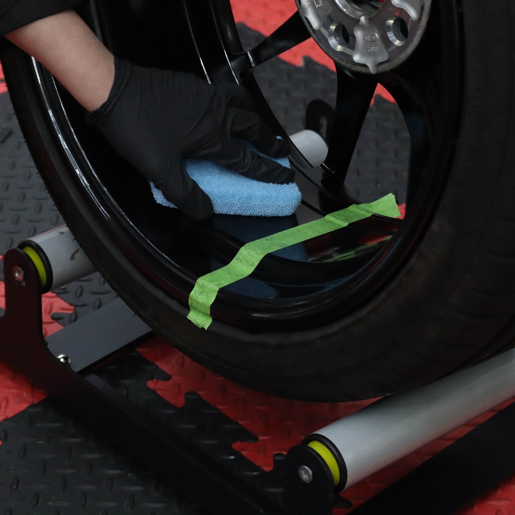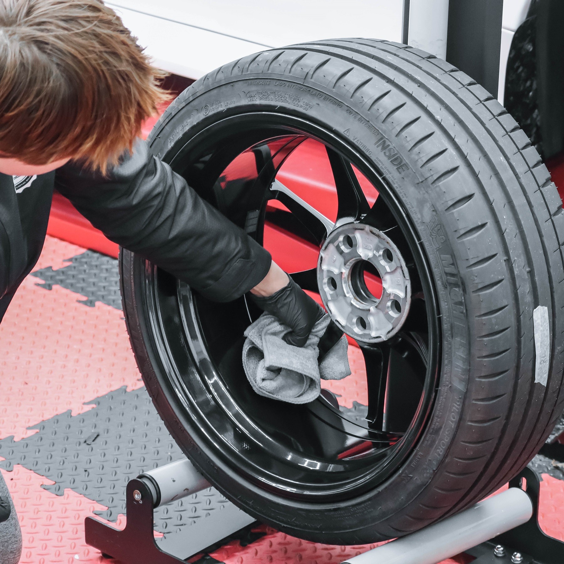 - Následně naneste keramický povlak na jedno celé kolo a setřete mikrovláknovou utěrkou.