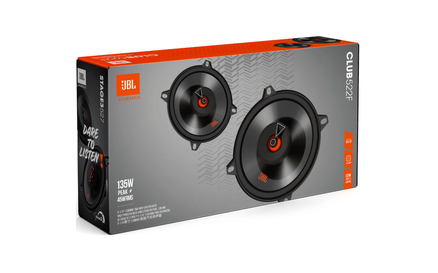 Reproduktory JBL Club 522F představují cenově dostupný a efektivní upgrade továrního ozvučení, který přináší čistší, dynamičtější a detailnější zvuk. Tyto 5,25" (130 mm) dvoupásmové koaxiální reproduktory jsou navrženy tak, aby se snadno vešly do většiny vozidel a zároveň nabídly výrazně lepší výkon i při napájení z běžného autorádia. Díky vysoké citlivosti poskytují hlasitější a živější přednes bez nutnosti externího zesilovače.