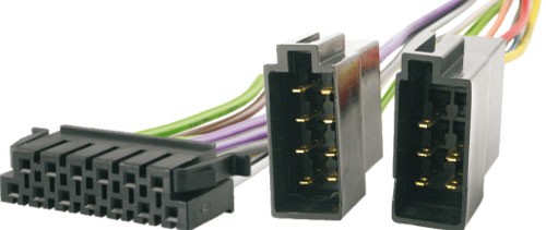 Kabelové svazky pro autorádia JVC se specifickým konektorem na straně autorádia a ISO konektorem na straně automobilu. Délka vodičů bývá obvykle 12-13 cm. Kabely jsou navíc barevně označené a s popisem.