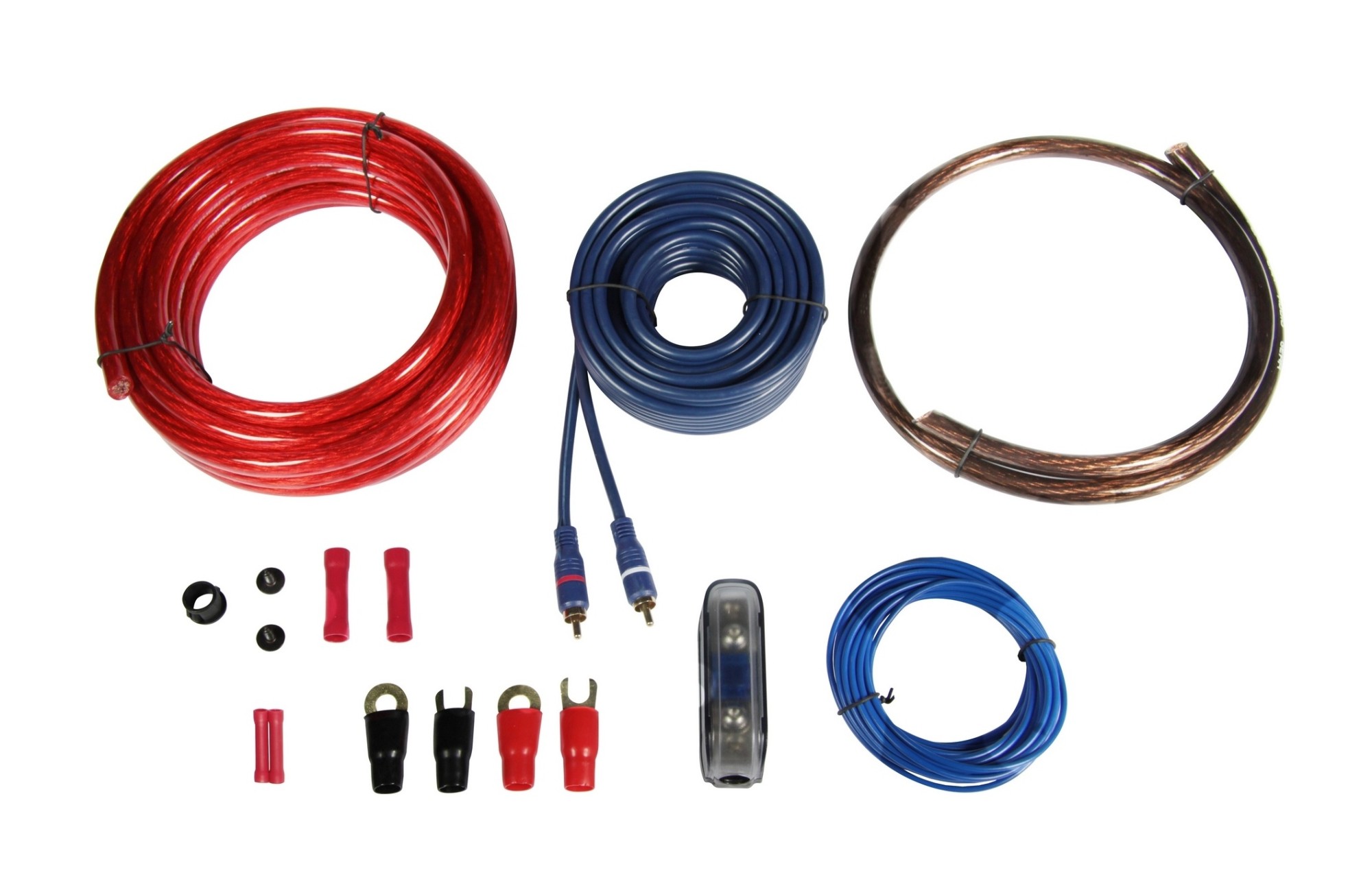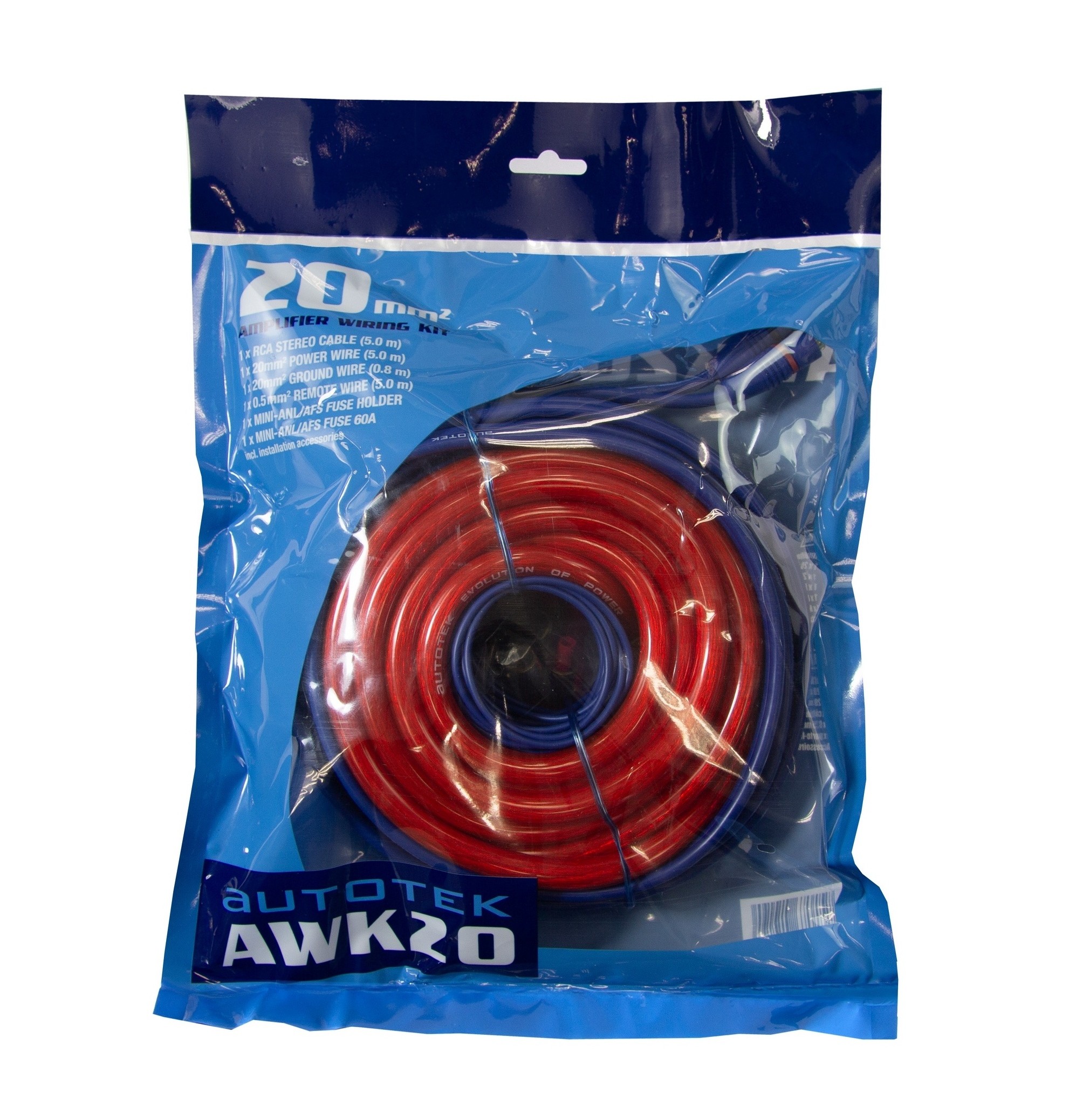 Autotek AWK20 je kompletní kabelová sada určená pro instalaci zesilovače v základních až středně výkonných car audio systémech. Je navržena tak, aby pokryla klíčové části instalace bez nutnosti dokupování dalších komponentů. Součástí sady je napájecí a zemnicí kabel řezu 20 mm², dále dvojitě stíněný stereo RCA kabel a ovládací kabel pro spínání zesilovače. Napájecí část je doplněna držákem pojistky typu AFS (Mini-ANL) včetně pojistky, což zajišťuje základní ochranu instalace.