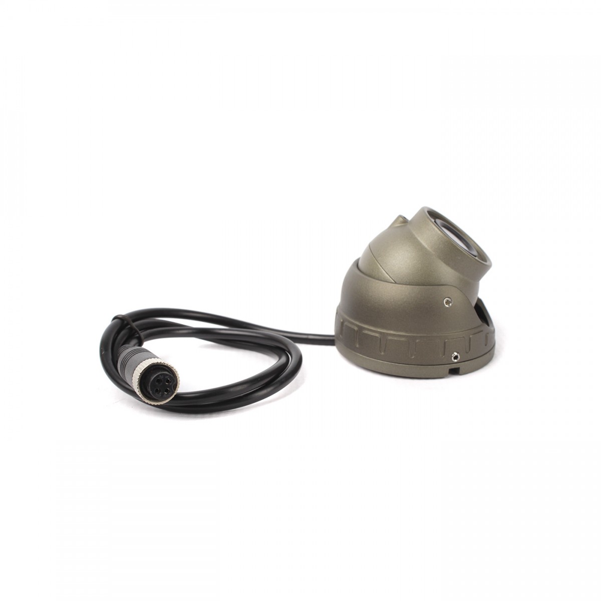 AHD kamera do vozidla s rozlišením 720p a automatickým IR přísvitem, je určena pro zobrazení na AHD monitoru, napájená z monitoru přes šroubovací konektory M12 4PIN, ideální pro použití jako stropní do ložného prostoru nebo kabiny, objektiv lze otočit a naklopit dle potřeby, kovové tělo a odolnost vůči vibracím ji určuje na použití i v náročnějších podmínkách, nastavení orientace obrazu se provádí na monitoru, je homologována.