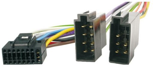 Kabelové svazky pro autorádia Kenwood se specifickým konektorem na straně autorádia a ISO konektorem na straně automobilu. Délka vodičů bývá obvykle 12-13 cm. Kabely jsou navíc barevně označené a s popisem.