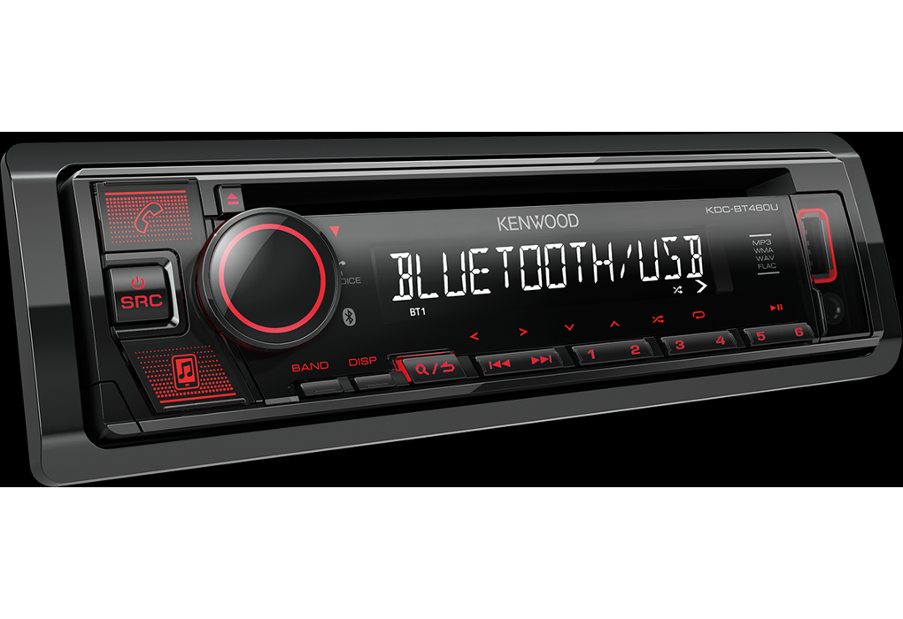 Autorádio s CD mechanikou, USB vstupem a s čelním AUX vstupem. Autorádio má integrované Bluetooth a červené podsvícení.Obecné specifikace autorádia Kenwood KDC-BT460U