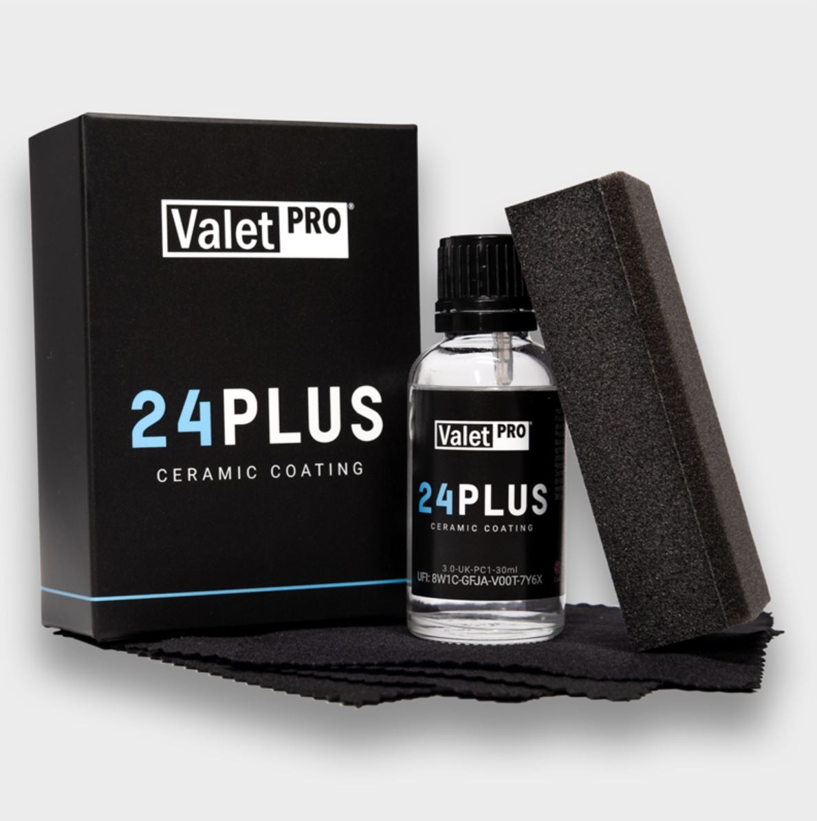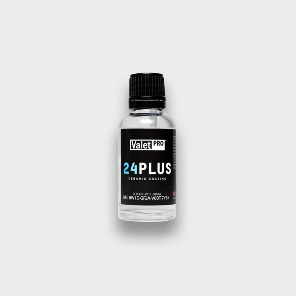 ValetPRO 24Plus Ceramic Coating je keramický povlak navržený s důrazem na snadné použití a vysokou výdrž. Tento keramický povlak od ValetPRO nabízí více než dvouletou ochranu při bezpečném mytí. 24Plus byl speciálně navržen tak, aby nabízel pomalejší dobu schnutí, což drasticky snižuje možnost zanechání zbytku keramiky během aplikace. Keramický povlak ValetPRO 24Plus nabízí 24+ měsíců ochrany, pokud jsou dodržovány postupy bezpečného mytí se šamponem s neutrálním pH. 24Plus Ceramic Coating skladujte na chladném a suchém místě. Po otevření je třeba přípravek spotřebovat do 30 dnů.