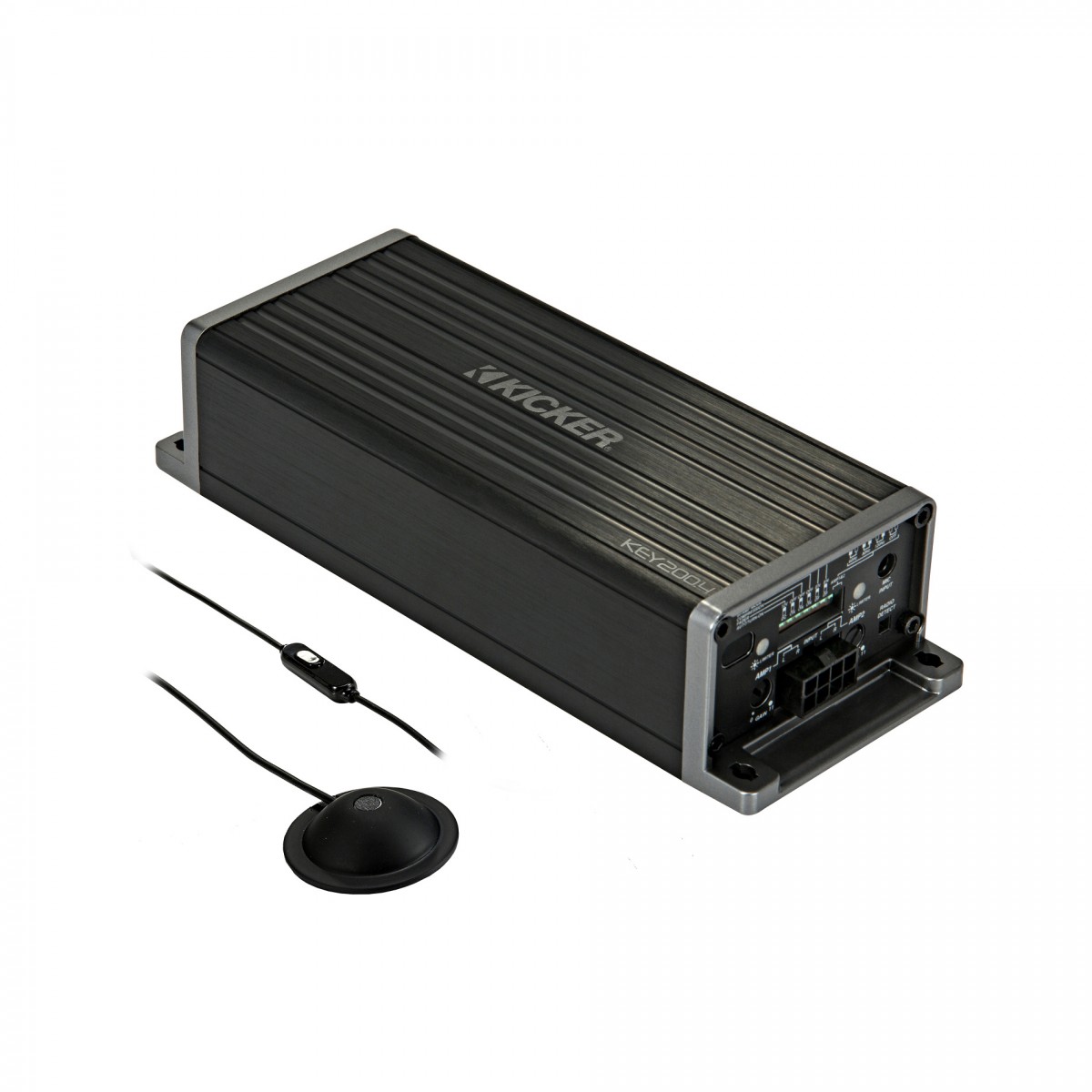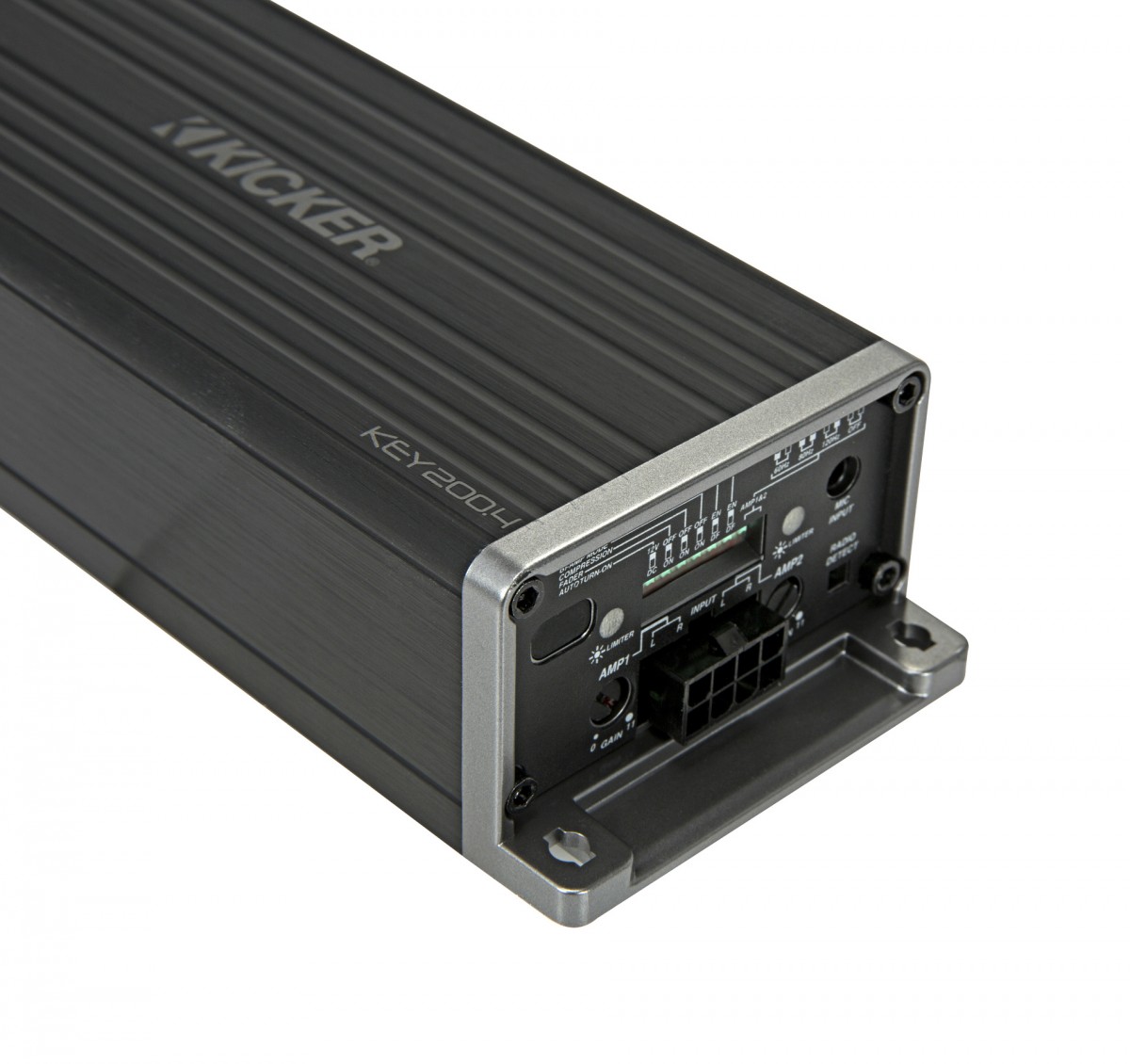 V nových inovativních zesilovačích KEY od společnosti KICKER® je zabudován výkonný DSP čip, který zajišťuje výrazné zlepšení zvuku, pokud jde o reálný poslech a scénu v každém vozidle. Jednoduše stiskněte přepínač pro automatickou kalibraci a mikrofon se postará o zbytek. To, co obvykle trvá hodiny profesionální práce, lze provést za pár minut. Výkonný 40pásmový ekvalizér a výhybky DSP 24 dB zlepšují tonalitu každého reproduktoru. Kromě neuvěřitelně dobré kvality zvuku lze zesilovače nainstalovat téměř kamkoliv - ať už bude za rádiem, pod sedadlem nebo v kufru.Klíčové vlastnosti micro zesilovače Kicker KEY200.4