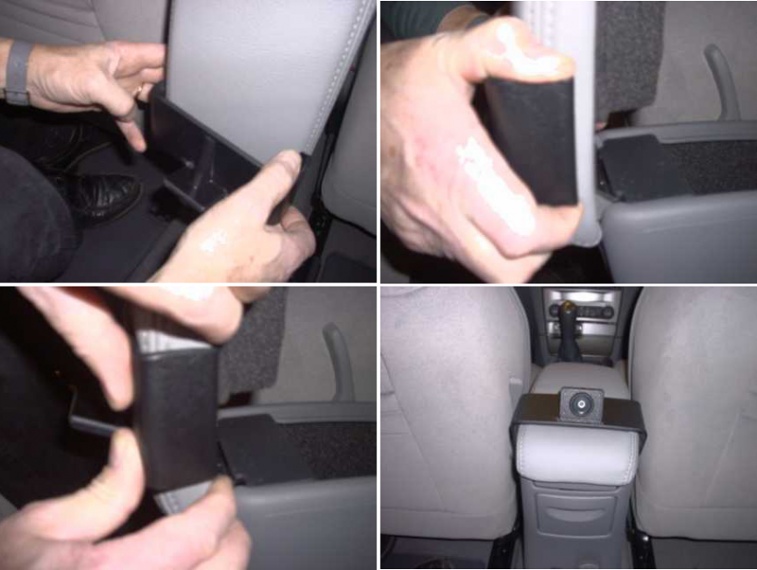 Konzole vhodná pro umístění monitoru na středový panel mezi sedadlo řidiče a spolujezdce pro sledování ze zadních sedadel. Provedení, které nebrání posunu ani náklonu sedadel. Umístění do interiéru bez vrtání. Vhodné pro většinu typů monitorů s uchycením do zadní vertikální drážky.