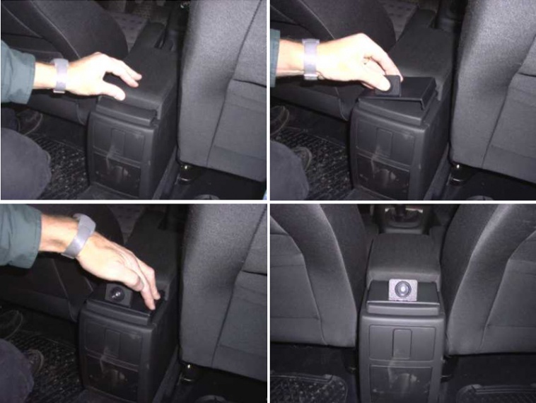 Konzole vhodná pro umístění monitoru na středový panel mezi sedadlo řidiče a spolujezdce pro sledování ze zadních sedadel.