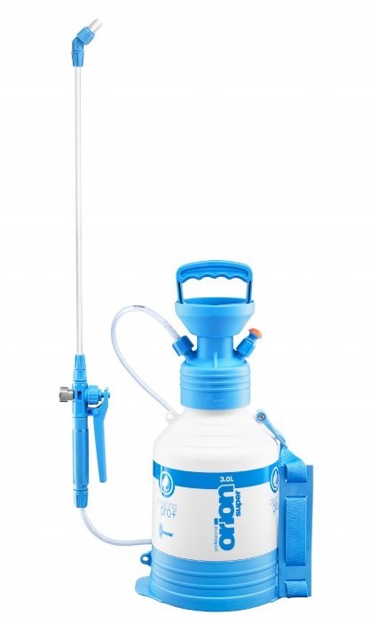 Široká škála kapacit postřikovačů od 3 l do 12 l vám umožňuje zvolit správné zařízení podle vašich potřeb. Postřikovače Orion Pro+ jsou navrženy pro práci na středních a velkých plochách. Jsou ideální pro dezinfekci různých typů povrchů, pro práci v automobilových myčkách, dílnách a v různých odvětvích průmyslu. Postřikovače Orion Pro+ používají těsnění z materiálu Viton. Díky tomu se vyznačují zvýšenou odolností vůči agresivním chemickým činitelům. Jednoduchý a osvědčený design umožňuje snadnou výměnu těsnění. Nádoba postřikovače je vybavena stabilizační základnou, díky níž je rozprašovač velmi stabilní. Základna izoluje nádrž od země a chrání ji před poškozením způsobeným případným pádem. Na nádrži se nachází mírka, která umožňuje snadnou přípravu pracovního roztoku. Nádrž nemá technologické otvory, což přímo ovlivňuje jeho trvanlivost a bezpečnost při práci. Bezpečnostní ventil chrání zařízení a uživatele. Spirálová tryska je vyrobena z mechanicky a chemicky odolného kompozitu ze skleněných vláken. Na rukojeti trysky se nachází tlakoměr, který řídí tlak uvnitř postřikovače. Tryska postřikovače je zakončena regulovatelnou tryskou, která umožňuje dosáhnout požadovaného stupně rozprašování. Transportní lišta umožňuje pohodlné používání postřikovače.Hlavní vlastnosti