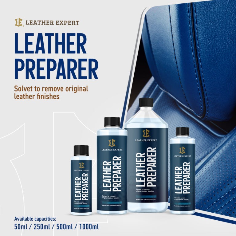 - Leather Alcohol Cleaner slouží k odmaštění povrchu a odstranění zbytků rozpuštěné barvy.