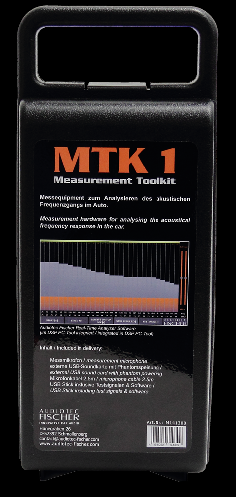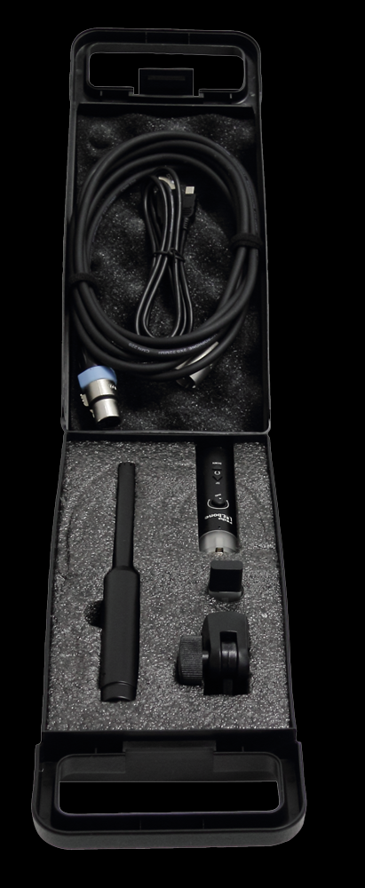 Kit na měření RTA. Součástí balení je speciální mikrofon (délka kabelu 2,5 m), USB karta s fantomovým napájením a USB kabel.