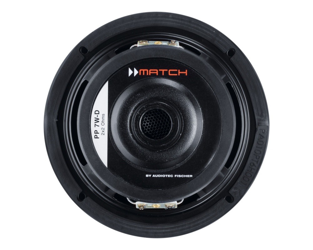 Skvělý kompaktní subwoofer pro doplnění Plug & Play systémů přesně pasujících do vašeho vozu - stává se tak ideálním doplněním k Match zesilovačům, např. PP 62DSP. Tento samostatný subwoofer doporučujeme volit v případě, že si nevyberete z již osazených ozvučnic. Můžete si tak ozvučnici vyrobit přesně podle vašich představ (při zachování objemu 9 - 10 litrů), nebo využít ozvučnice do boků zavazadlových prostorů. Na ušetření místa v autě je toto řešení ideální. Tyto subwoofery jsou důkazem, že i kompaktní sofistikované ozvučnice v kombinaci s nejmodernější DSP technologií, mohou dosáhnout hlubokých a hutných basů. Tajemství úspěchu se skrývá v týmové spolupráci obou "hráčů". Match zesilovače mají pro tyto subwoofery přesně připravený kanál s optimálním výkonem a nastavením. Subwoofery mají zase vyladěnou impedanci cívek pro dosažení maximálního efektu. 165mm subwoofery od Match jsou vhodné do aut, kde je minimum místa pro subwoofer. Velmi dobrý poměr cena/výkon!
