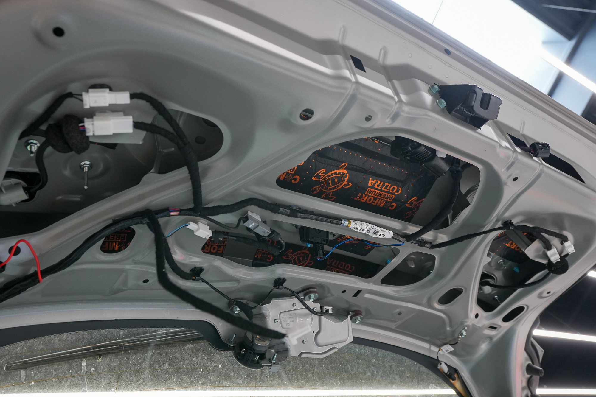 Montáž prováděl náš čtyřčlenný tým v průběhu jednoho pracovního dne. Výsledkem je výrazně tišší interiér, který podtrhuje prémiový charakter vozu a zvyšuje komfort zejména při dálničních přesunech nebo jízdě po nerovnostech. Dle našich zkušeností a měření v obdobných vozech přináší odhlučnění Comfortmat ve variantě Premium Plus snížení hluku v kabině o 3,5 až 4 dB, což akusticky odpovídá více než dvojnásobnému útlumu hluku oproti sériovému stavu. Rozdíl je znatelný hned při prvních kilometrech – kabina působí tišším, klidnějším a luxusnějším dojmem.