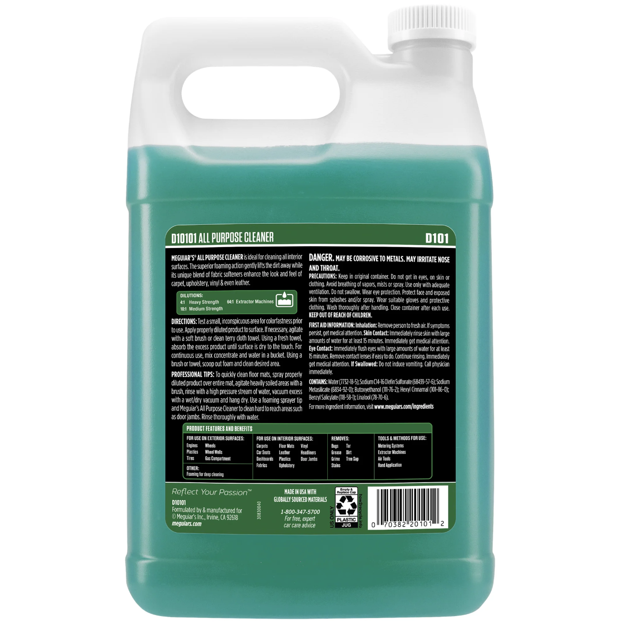 Meguiar's All Purpose Cleaner je profesionální, vysoce koncentrovaný víceúčelový čisticí prostředek, navržený pro detailní čištění interiérů i exteriérů vozidel. Díky svému špičkovému pěnícímu účinku šetrně zvedá nečistoty z povrchu a efektivně je odstraňuje. Tento univerzální čistič je ideální pro renovaci a hloubkové čištění většiny vnitřních povrchů, včetně koberců, textilií, vinylu a dokonce i kůže. Obsahuje změkčovače tkanin a optické zjasňovače, které zanechávají čalounění a textilní povrchy v luxusním, oživeném vzhledu. Jako koncentrát je mimořádně ekonomický a umožňuje vám namíchat požadovaný roztok přesně podle síly znečištění.