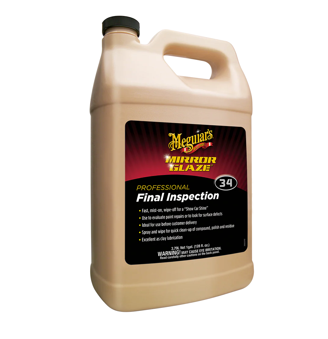 Meguiar’s Mirror Glaze Final Inspection Mist & Wipe je vysoce efektivní spray-detailer navržený pro profesionální použití v lakovnách i detailingových dílnách - rychle, snadno a bezpečně odstraní čerstvé kontaminace, zbytky past, leštěnek či mazadla a navrací laku showroomový vzhled. Produkt je vhodný pro testování stavu laku, odhalování drobných vad po opravách a jako finální setření před předáním vozu ákazníkovi. Navíc může fungovat i jako lubrikant pro clay-bar aplikaci. Bezpečný pro všechny typy lakovaných povrchů včetně čirých vrstev.