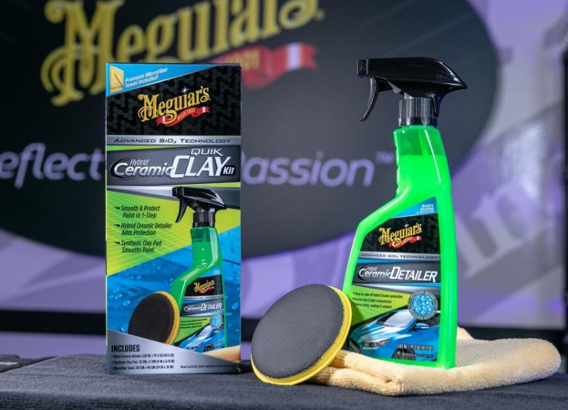 V sadě Meguiar's Hybrid Ceramic Quik Clay Kit najdete vše, co potřebujete pro vytvoření laku, který je hladký jako sklo! Syntetický clay funguje stejně jako běžný clay, ale je ještě jednodušší s ním pracovat a můžete ho používat znovu a znovu! Navíc je šetrnější k laku, a proto jej můžete bez obav používat i pro měkké a citlivé laky! Meguiar's Hybrid Ceramic Detailer je nejen skvělým lubrikantem, který umožňuje syntetickému clayi lehce klouzat po laku, ale zanechává na ošetřovaném povrchu vrstvu skutečné hybridní keramické ochrany, která odpuzuje vodu "jako šílená"!