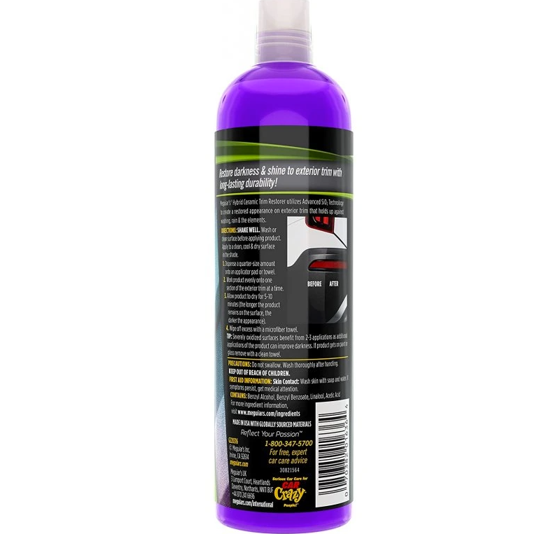 Meguiar’s Hybrid Ceramic Trim Restorer je špičkový přípravek pro oživení a dlouhodobou ochranu nelakovaných plastových a gumových částí exteriéru, jako jsou lišty, nárazníky, kryty zrcátek či další vybledlé plasty. Díky pokročilé Hybrid Ceramic technologii s obsahem SiO₂ obnovuje původní tmavý odstín, dodává hluboký saténový vzhled a vytváří odolný ochranný povlak, který chrání před UV zářením, vyblednutím a povětrnostními vlivy. Výsledkem je dlouhotrvající, výrazný a čistý vzhled, který vydrží podstatně déle než běžné přípravky na plasty.