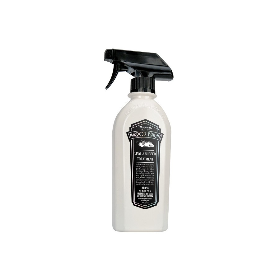 Přípravek pro čištění, oživení a ochranu všech plastových a gumových povrchů v interiéru i exteriéru auta - to je Meguiar's Mirror Bright Vinyl & Rubber Treatment. Obnovte přirozeně lesklý, luxusní a tmavý vzhled tou nejjednodušší metodou "nastříkat - setřít!" Meguiar's Mirror Bright Vinyl & Rubber Treatment je univerzálním produktem pro péči o interiérové i exteriérové plasty, okenní lišty, dveřní těsnění, pneumatiky i motorový prostor. Jeho složení čistí a oživuje původní přirozený lesk a dodává bohatý a tmavý vzhled, který vypadá dokonce lépe než nový povrch. Silné UV blokátory chrání před slunečními paprsky a udržují výsledný finiš perfektní po dlouhou dobu. Stačí jen nastříkat, setřít a je hotovo. Kompletní péče o plasty v jednom snadném kroku. Jednoduchost použití a špičkové výsledky, to jsou produkty z řady Meguiar's Mirror Bright.