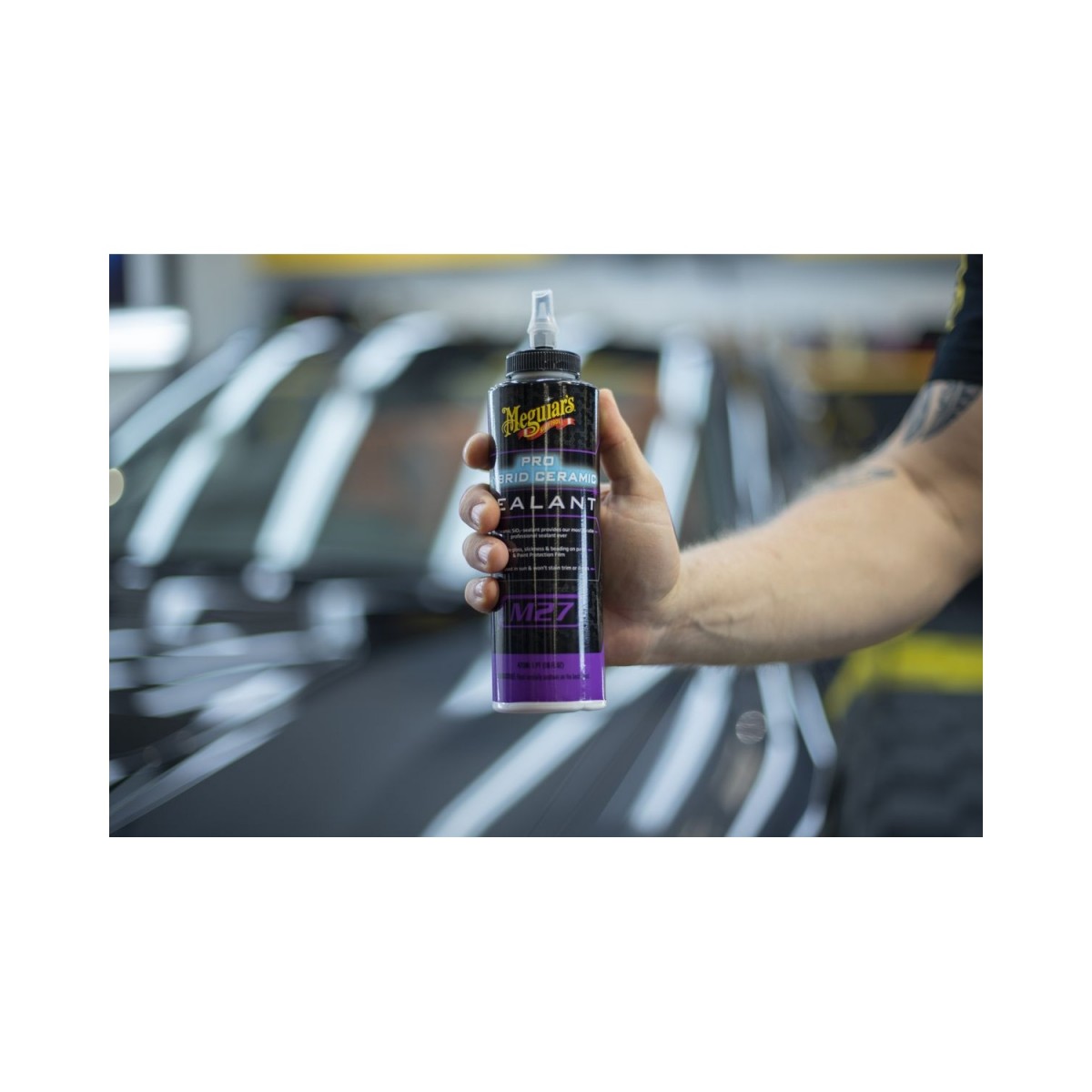 Meguiar’s M27 Hybrid Ceramic Sealant je profesionální hybridní keramický sealant navržený pro náročné ošetření lakovaných povrchů automobilu. Díky technologii SiO₂ vytváří velmi odolný ochranný film, který zajišťuje výrazné korálkování vody, vysoký lesk a pocit hladkosti, běžně spojený s keramickými ochranami. Produkt lze aplikovat ručně nebo strojně a lze jej využít jako samostatnou ochranu nebo jako vrstvu nad stávající vosky, sealanty či ochranné fólie. Je bezpečný pro použití na laku, plastových lištách, gumě i dekorativních prvcích a nezanechává bílé stopy či zabarvení, což je ideální pro detailery i nadšence péče o auto.