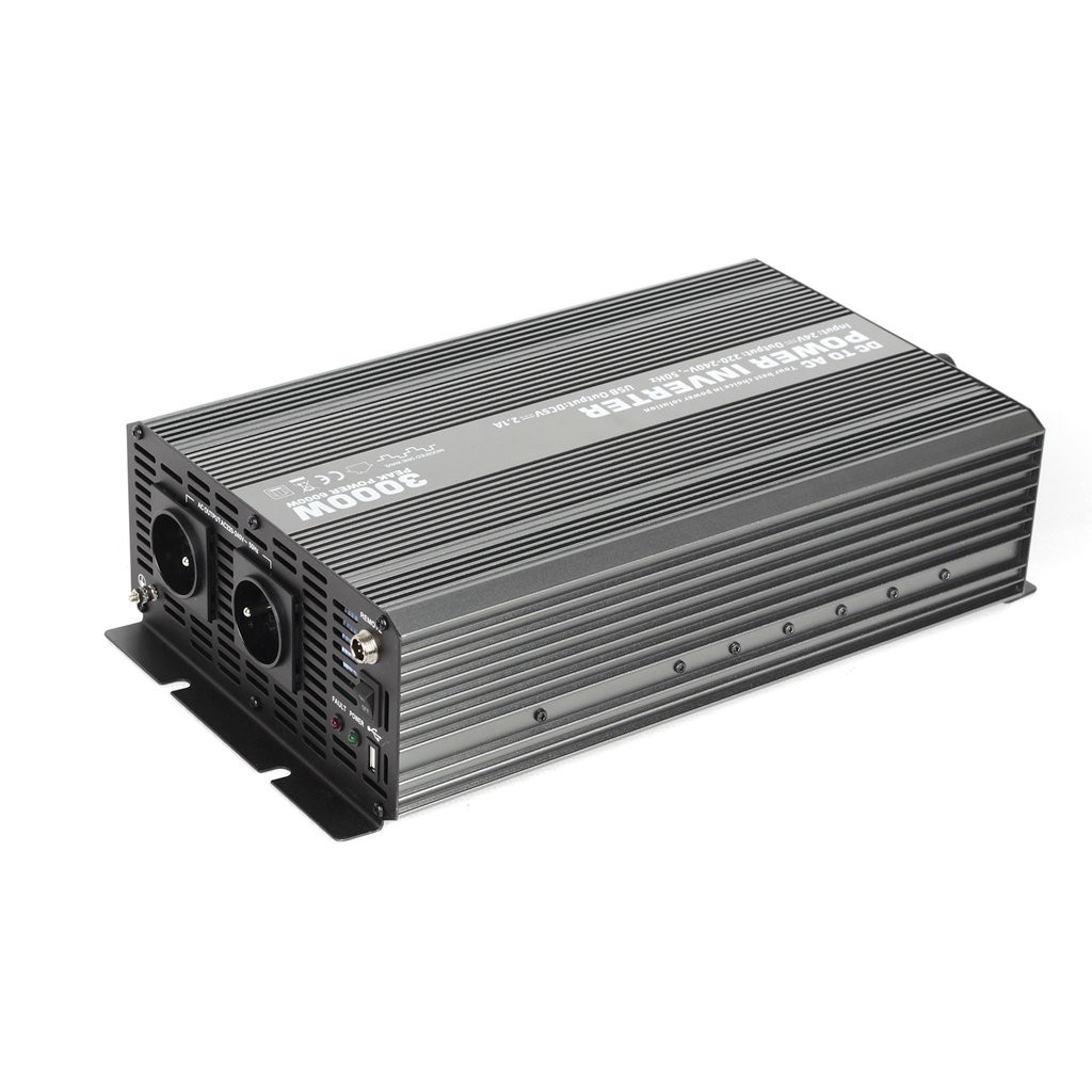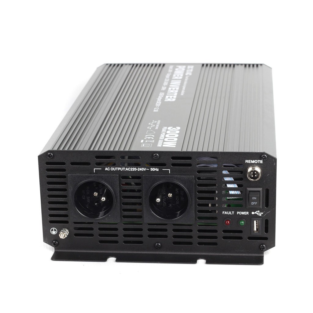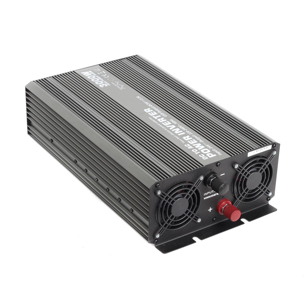 Měnič s výkonem 3000W je vhodný pro vozidla s palubní sítí 24V (nákladní vozidla), pro napájení spotřebičů 230V jako mikrovlnky, konvice, bojlery, čerpadla, žárovky, ruční nářadí, chladničky. Výstupní proud má podobu modifikované sinusoidy (obdélníkový průběh) o frekvenci 50Hz/230V, je vybaven USB výstupem pro nabíjení USB zařízení (MP3 přehrávače,...).