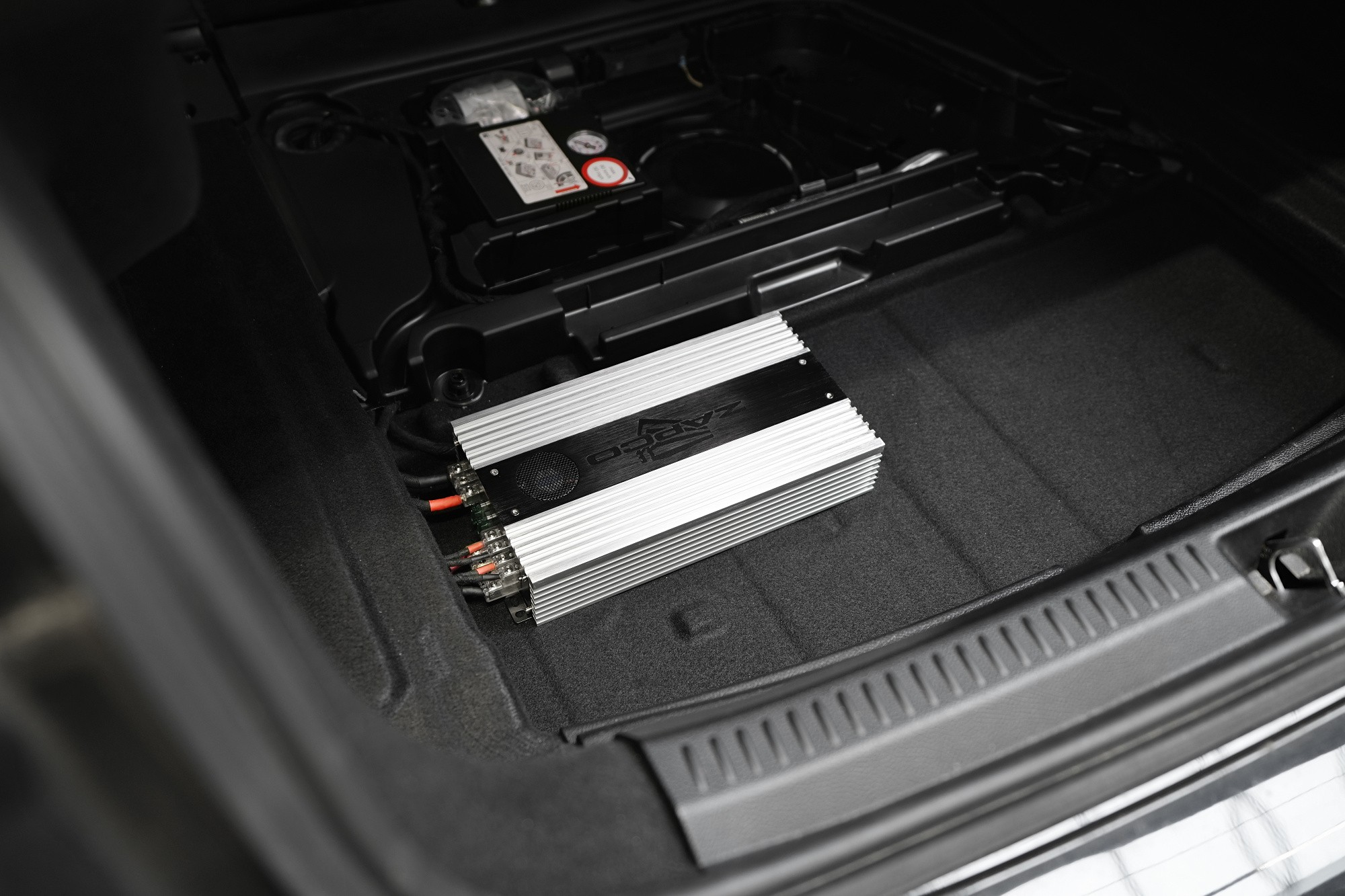 Důležitou roli v ozvučení tohoto vozu hraje také zesilovač amerického výrobce Zapco. Pokud to rozpočet a prostor v automobilu dovolí, vždy se snažíme instalovat analogové zesilovače třídy A/B pro jejich věrný zvuk, kterého nelze s digitálními zesilovači dosáhnout. A právě Zapco je díky svým kvalitám vždy sázkou na jistotu. Integrovaný DSP procesor nám navíc umožní zvuk detailně nastavit. U všech našich instalací je samozřejmostí kabeláž z bezkyslíkaté OFC mědi a kvalitní signálové kabely.