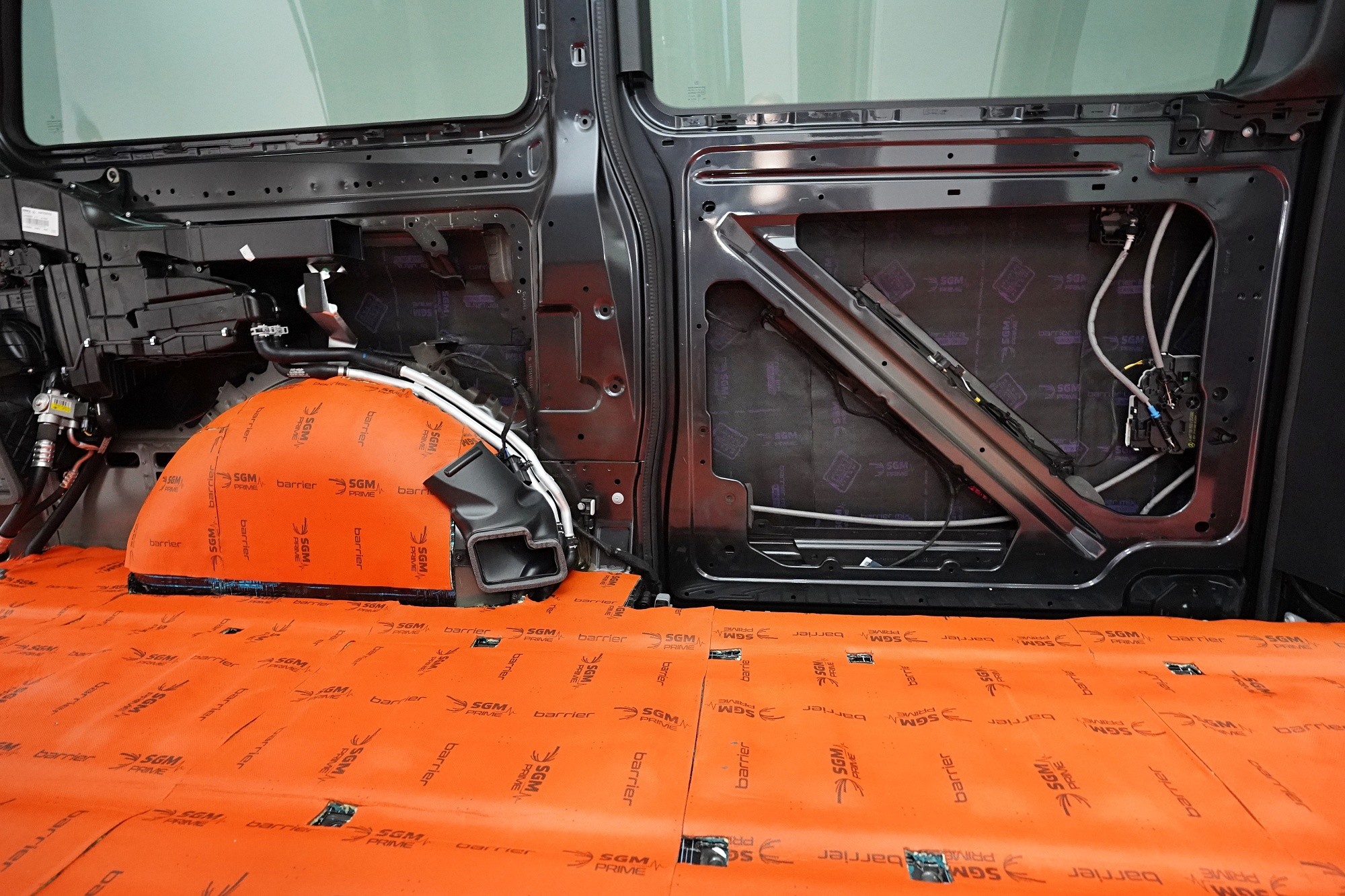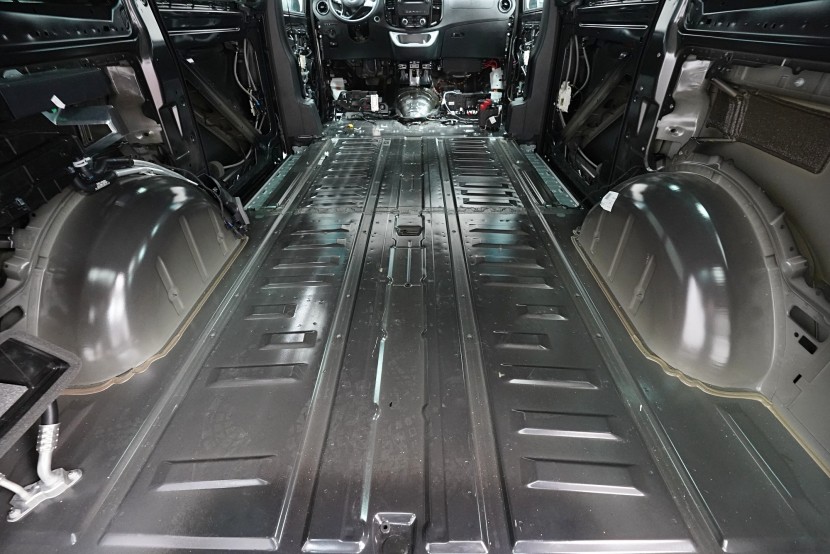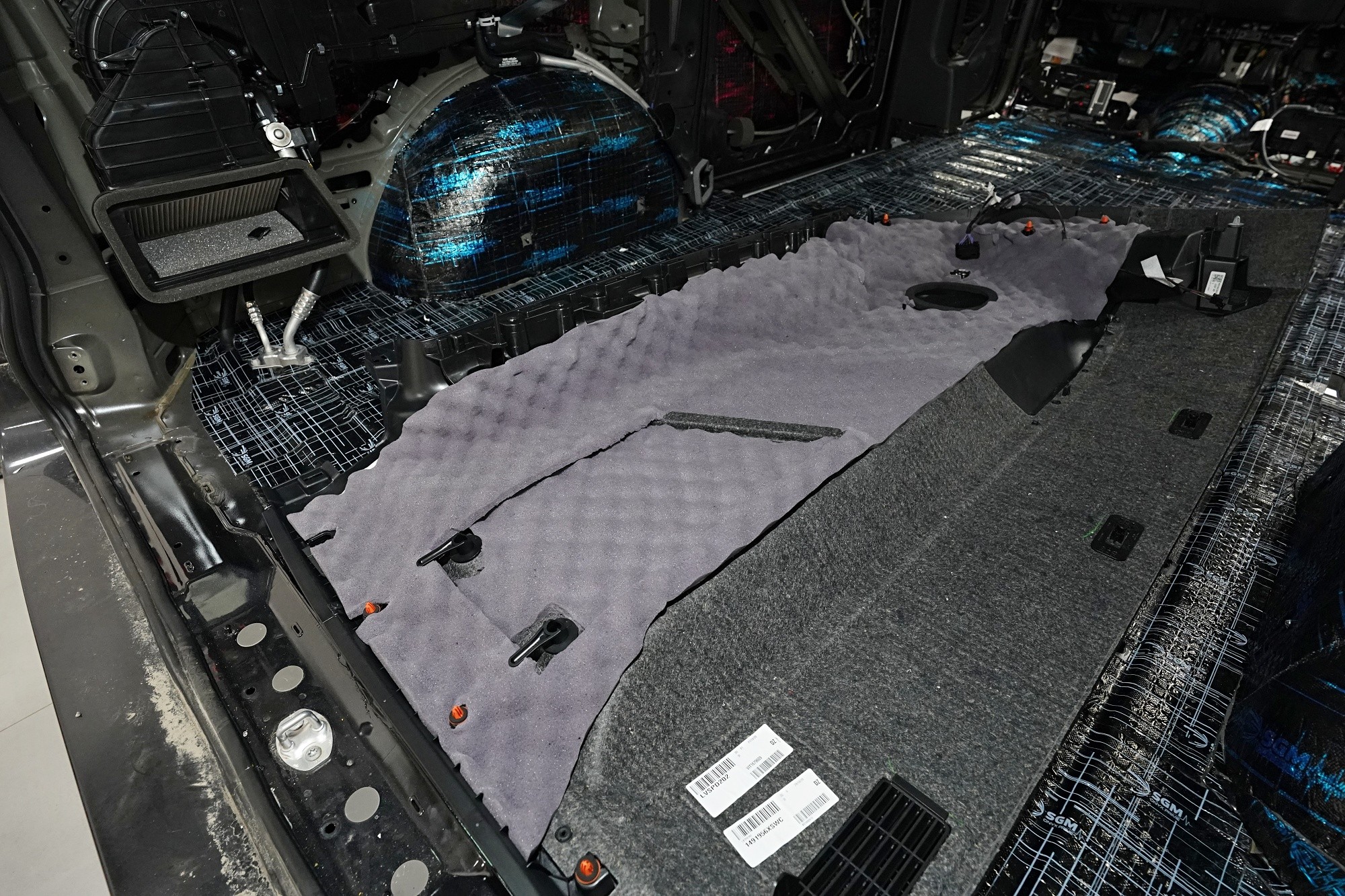 Na zadní část podlahy u tohoto vozu můžeme aplikovat stejný materiál jako v přední části, tedy SGM Barrier Mix Ultra. Díky tomu je celá podlaha odhlučněna maximálním způsobem a zcela odolná proti hluku od vozovky, pneumatik, převodovky nebo zavěšení kol.