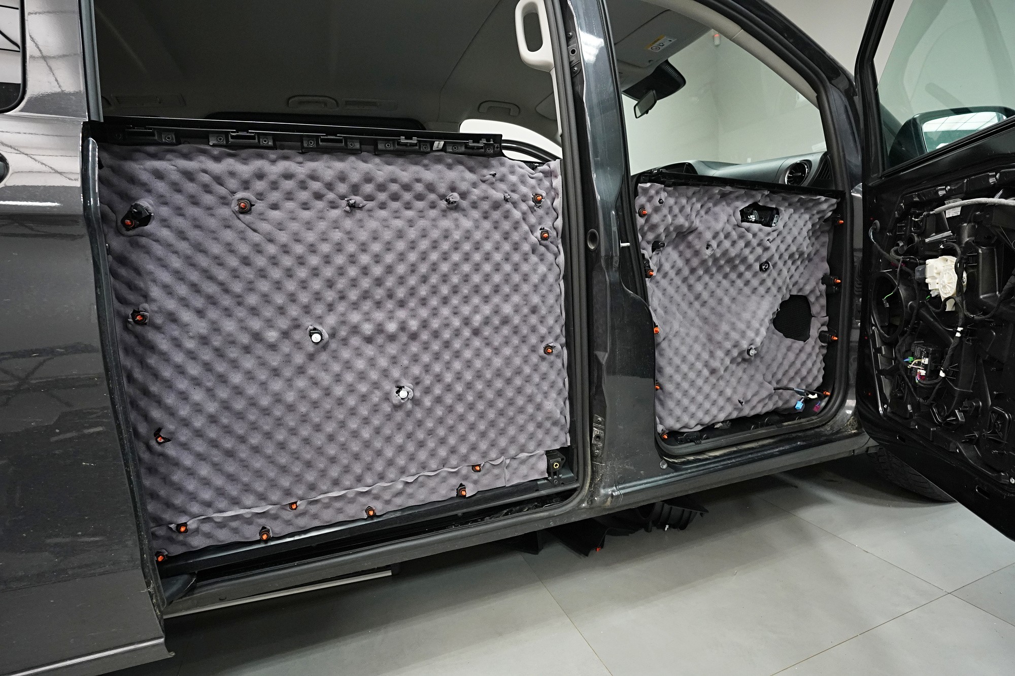 Kompletní odhlučnění vozu Mercedes-Benz Vito v maximální konfiguraci, která je v současné době možná. Tento vůz již tradičně trpí na enormní hluk v interiéru a to zejména od vozovky, motoru, podběhů předních i zadních kol a díky své konstrukci je výrazný i aerodynamický hluk. Požadavek zákazníka bylo maximální odhlučnění bez kompromisů a pro tyto případy máme nachystanou variantu od ruského výrobce SGM. Zvolil jsme náš nejúčinnější balíček odhlučnění Expert Plus a konkrétně jsme se tedy zaměřili na přední, posuvné i páté dveře, podlahu, střechu, boky, přední i zadní podběhy z vnitřní strany, torpédo a kapotu. Odhlučňujeme samozřejmě i většinu plastových dílů v interiéru. Všechny zvolené materiály jsou i tepelně izolační a tento vůz je nově chráněn i před tepelnými ztrátami. Na odhlučnění pracují zároveň čtyři naši technici, kteří montáž zvládnou v rámci 1 pracovního dne. Více informací se dozvíte v naší fotoreprotáži.