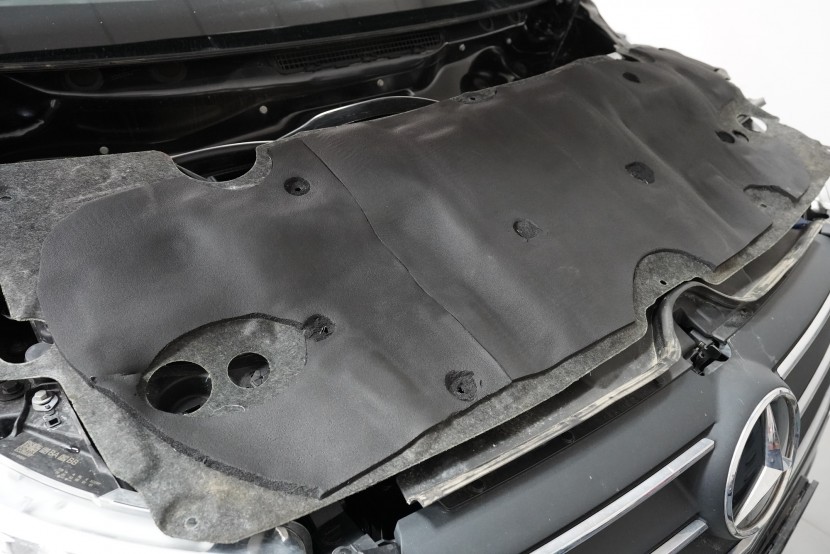 Nezapomínáme ani na kapotu, na kterou v první vrstvě aplikujeme lehký antivibrační materiál SGM Air 2. Tím kapotu zpevníme, zamezíme vibracím, které se přenáší do dalších částí vozu a zmizí i typický plechový zvuk při zavření kapoty. Na originální kryt kapoty následně aplikujeme zvukově i tepelně izolační materiál SGM R-Ton, který sníží hluk motoru a to při zachování původního vzhledu motorového prostoru.