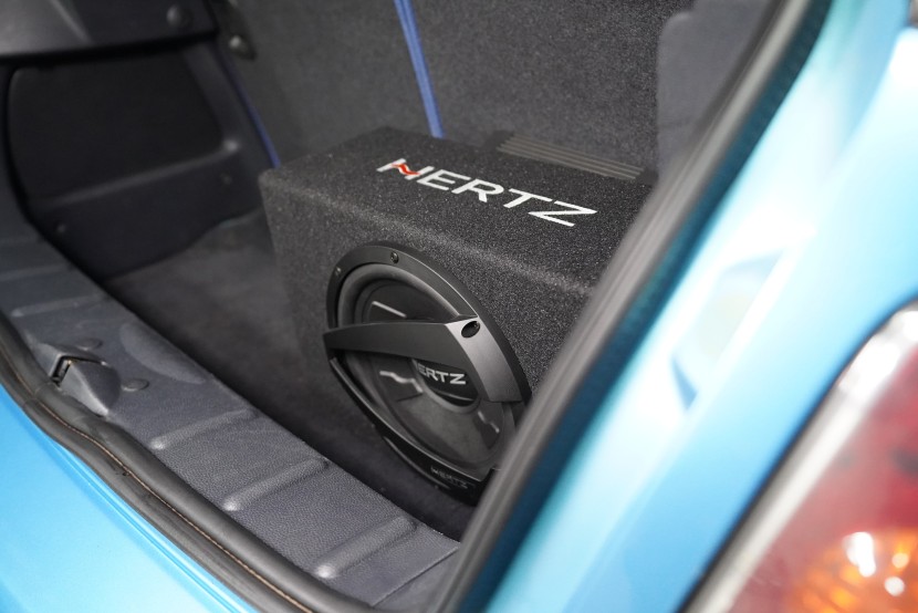 Do zavazadlového prostoru jsme poté instalovali subwoofer italského výrobce Hertz, který i přes své kompaktní rozměry dokáže dostatečně podpořit celkovou dynamiku ozvučení. Hertz DBX 25.3 disponuje měničem o průměru 250 mm a výkonem 150 W RMS. Uzavřená MDF ozvučnice umožní přesné a rychlé basy pro poslech libovolného stylu hudby.