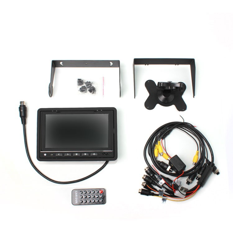 TFT monitor s úhlopříčkou 7", s dálkovým ovládáním je určen k zobrazení obrazu z AV signálu pro vozidla s 12V / 24V palubním napájením. Monitor obsahuje 4 x AV vstup, je vhodný pro připojení 4 kamer, umožňuje nahrávání 1 kanálu na SD kartu, podporuje současné zobrazení více kanálů. Je možné ho instalovat hlavou dolů na stropě, protože má funkci otočení obrazu. Připojené AV kanály lze přepínat manuálně přímo na monitoru, monitor lze manuálně vypnout. Po přivedení napětí na signální vodič, monitor zobrazí automaticky příslušný kanál (po zařazení zpátečky, vyhozeni směrovky).