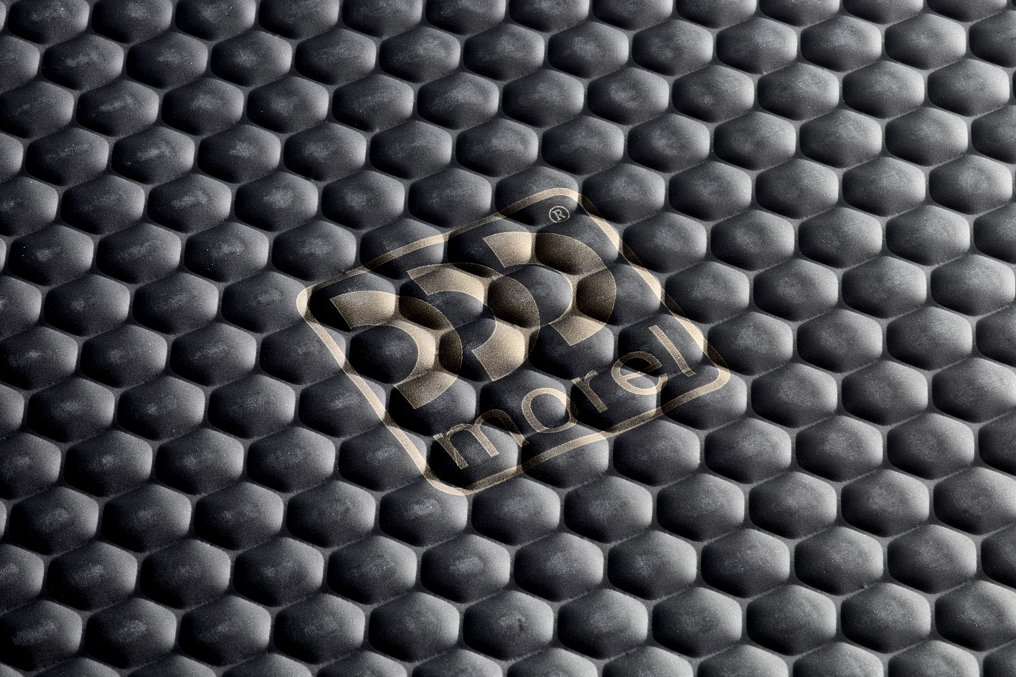 Morel Acudamp MAT 221.10 je dvouvrstvý antivibrační materiál s celkovou tloušťkou 2,1 mm, navržený pro účinné potlačení vibrací, hluku a nežádoucí rezonance v karoserii. Konstrukce kombinuje butylovou hmotu s odolnou hliníkovou fólií o tloušťce 100 mikronů. Díky tomu nabízí vysoký mechanický útlum, dlouhodobou stabilitu a velmi dobrou tepelnou odolnost. Materiál využívá unikátní povrchovou ražbu ve tvaru šestihranné plástve, která zlepšuje mechanické vlastnosti aluminiové vrstvy a zároveň usnadňuje instalaci. Tato struktura je na trhu výjimečná a dodává materiálu vyšší pevnost při ohybu i při aplikaci na zakřivené plochy. Acudamp je určen především pro odhlučnění dveří, bočních částí karoserie, střechy či zavazadlového prostoru, kde efektivně zvyšuje tuhost plechu a eliminuje rezonance. Instalace je rychlá a čistá díky stabilní butylové hmotě bez zápachu a s vysokou přilnavostí. Materiál je vhodný pro kombinaci s dalšími vrstvami odhlučnění a tvoří tak pevný základ pro snížení hluku v interiéru.