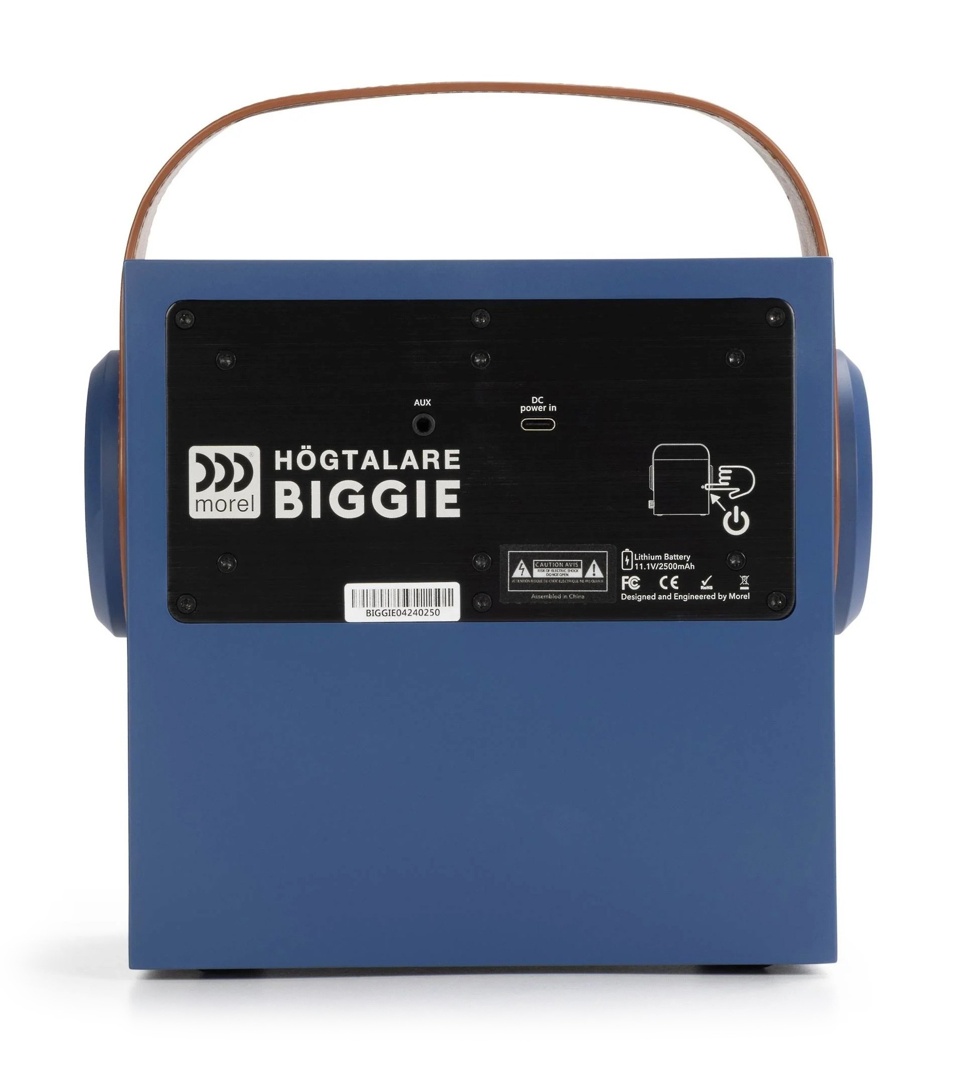 Design reproduktoru Biggie kombinuje minimalistickou estetiku s praktickými detaily. Kompaktní čtvercový tvar navazuje na design modelu Högtalare, tentokrát však v menším a snadno přenosném provedení. Rukojeť s povrchem připomínajícím kůži (animal-friendly) usnadňuje přenášení a lze ji také odejmout. Biggie je dostupný v široké škále barevných variant, které umožňují sladit reproduktor s interiérem nebo osobním stylem. K dispozici jsou varianty v černé, bílé, červené, tmavě modré, zlatavě žluté, světle modré, olivově zelené a tyrkysové barvě, pro milovníky přírodních materiálů je dostupná také elegantní verze s dubovým povrchem.