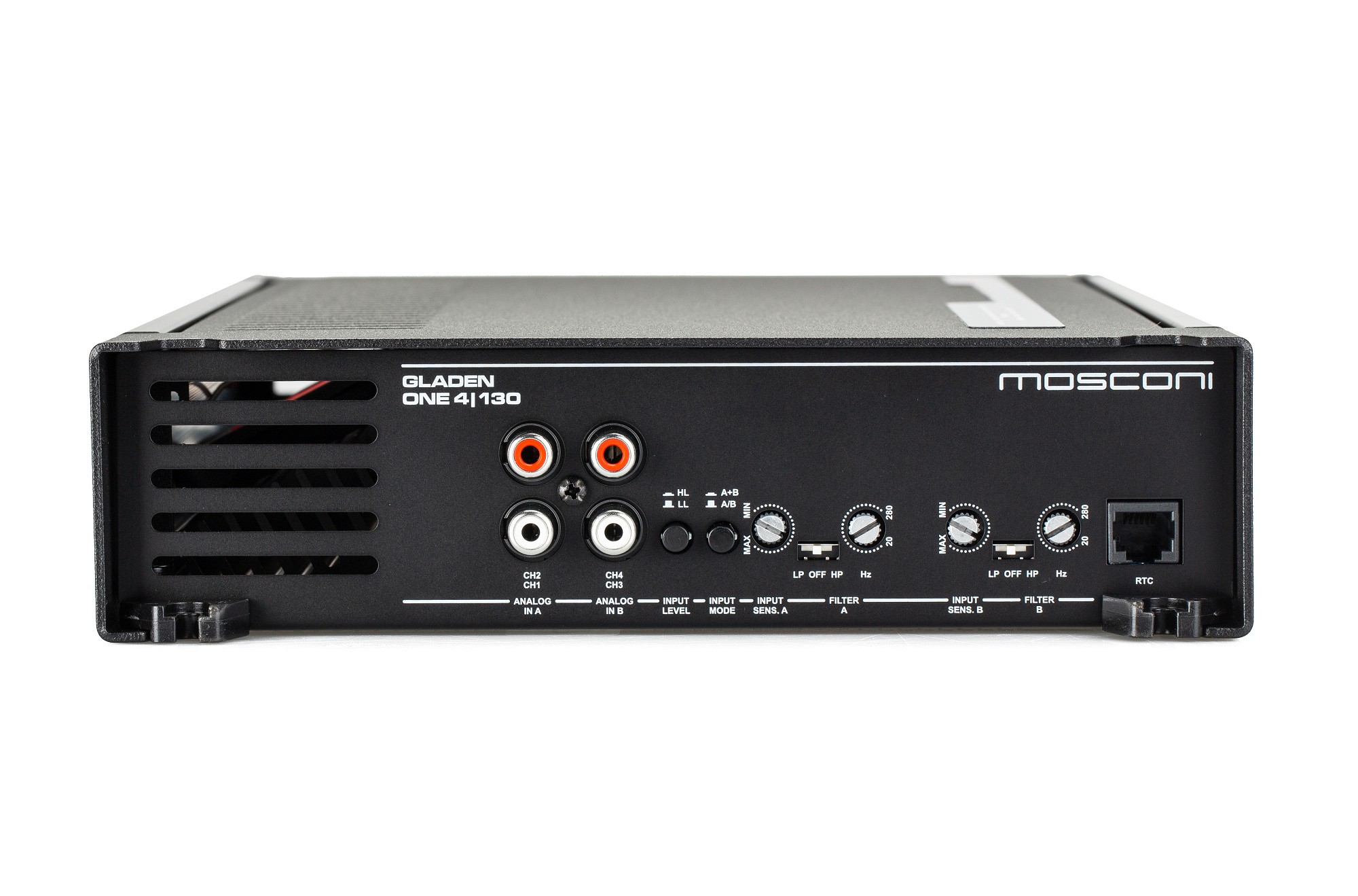 MOSCONI ONE 4|130 je univerzální 4kanálový vysoce kvalitní zesilovač v technologii třídy AB. Je to ideální zesilovač pro reproduktorové systémy nebo středně velké subwoofery. ONE 4|130 je navržen jako dvojitý stereo zesilovač, ale lze jej provozovat také ve tří nebo dvoukanálovém režimu. Tento zesilovač je výkonný a díky analogové technologii Full Mosfet má vynikající zvukové vlastnosti. Řada GLADEN ONE je bestsellerem a páteří mnoha kompletních systémů. Cílem vývoje bylo vytvořit nekomplikované, univerzální zesilovače s velmi dobrým zvukem a dynamikou. Se svými flexibilními vstupy poskytuje řada GLADEN ONE také počáteční jiskru pro hifi u továrních hlavních jednotek.Hlavní vlastnosti zesilovače Mosconi Gladen ONE 4|130