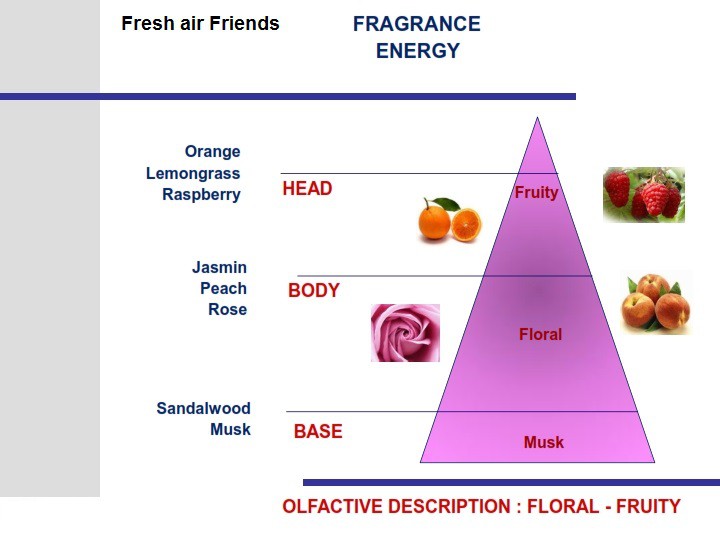 Cesare je osvěžovač vzduchu pro automobily, který obsahuje agresivní molekuly, které dokáží dlouho bojovat proti zákeřným bakteriím, které způsobují zápach. Vůně Energy (energie) je pulsující směs pomeranče, citronu, mandarinky a aromatické skořice, která vás nabije energií. Panáček Cesare z kolekce oblíbených panáčků Fresh Air Friends od Mr&Mrs Fragrance je ideální parťák na provonění interiéru vašeho auta.Panáček do ventilace Mr&Mrs Fragrance z řady CESARE