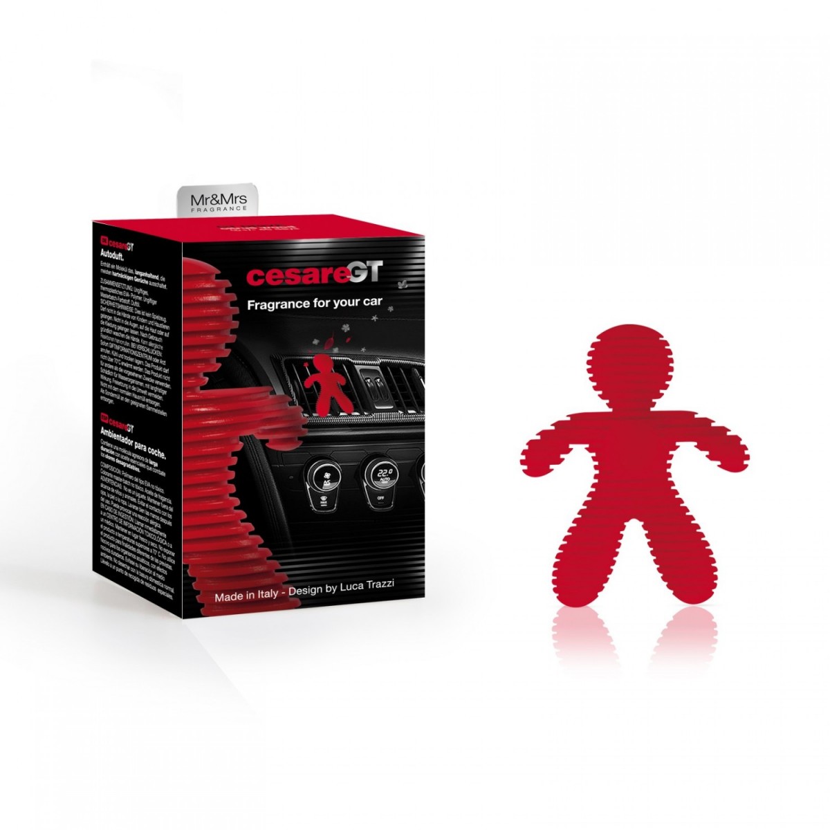 Panáček Cesare GT z kolekce oblíbených panáčků Fresh Air Friends od Mr&Mrs Fragrance je ideální parťák na provonění interiéru vašeho auta či jakéhokoliv menšího prostoru. Cesare GT je Váš nový společník na cesty, který promění Vaši jízdu v jedinečný smyslový zážitek, jeho pruhovaná textura připomíná sevření a kontrolu. Stvořený přímo pro náročnější a sportovní řidiče, je k dispozici v 5 barvách s novými vůněmi inspirovanými různými styly jízdy. Odstraňte ochranný celofánový obal a umístěte panáčka do ventilace automobilu. Pohodlí a styl, doplněný bergamotem, jablkem, karafiátem, vetiverem a santalovým dřevem.Panáček do ventilace Mr&Mrs Fragrance z řady CESARE GT