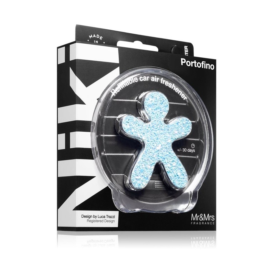 Vůně do auta Niki Fashion je designovou luxusní autovůní, která je nástupcem tolik oblíbených panáčků Niki. Balení obsahuje i iniciální náplň, kterou je možné kdykoliv po vyvonění vyměnit za novou náplň ve stejné či jiné vůni. Provoňte vaše auto se svěží ovocnou vůní Portofino. Vůně Portofino je jedinečným koktejlem šťavnatého ovoce a květinových tónů, které vás zavedou na spanilou cestu kolem světa. Za pomoci univerzálního funkčního klipu připevníte vůni (vertikálně nebo horizontálně) na větrací otvory (vývod klimatizace) každého auta. Vůně do auta pak za pomoci proudícího vzduchu rozvádí stálou a dlouhotrvající vůni. Můžete použít EVA náplň napuštěnou aroma olejem dle výběru, kterou můžete snadno nahradit novou náplní. Balení včetně iniciální náplně, kterou je možné kdykoliv vyměnit za jednu z 15 jiných alternativ.Vůně do ventilace Mr&Mrs Fragrance z řady Niki Fashion