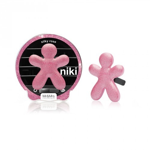 Za pomoci univerzálního funkčního klipu připevníte vůni (vertikálně nebo horizontálně) na větrací otvory (vývod klimatizace) každého auta. Vůně do auta pak za pomoci proudícího vzduchu rozvádí stálou a dlouhotrvající vůni. Můžete použít EVA náplň napuštěnou aroma olejem dle výběru, kterou můžete snadno nahradit novou. Balení včetně iniciální náplně, kterou je možné kdykoliv vyměnit za jednu z 15 jiných alternativ. Provoňte vaše auto s vůní Silky Rose (hedvábná růže)!Vůně do ventilace Mr&Mrs Fragrance z řady Niki