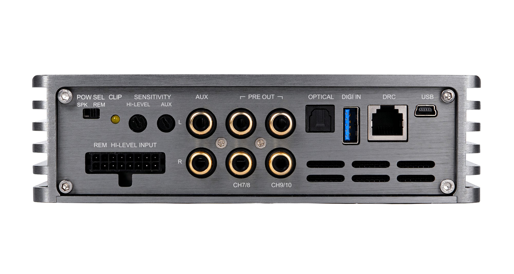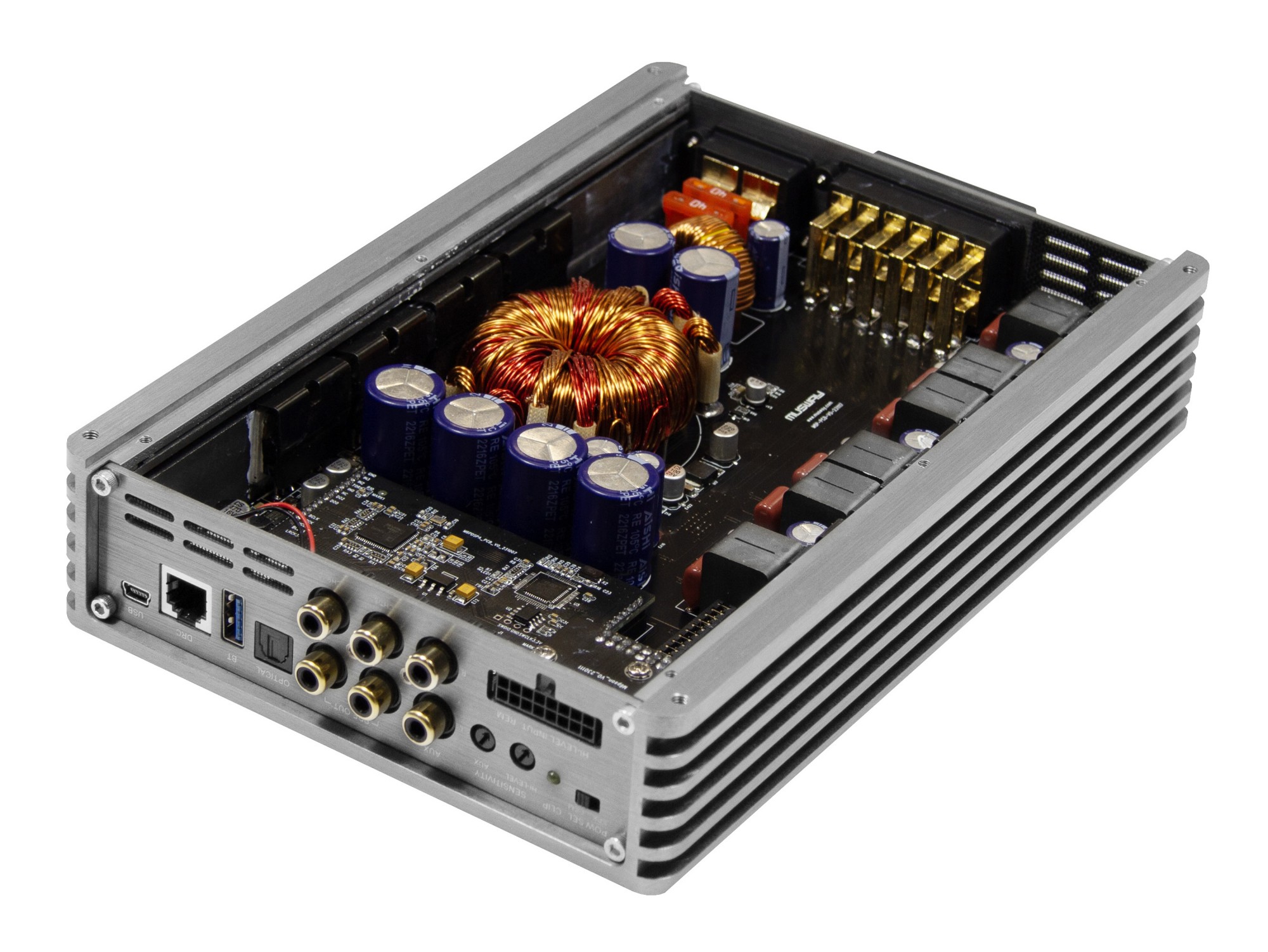 - 6kanálový zesilovač třídy D s integrovaným 10kanálovým DSP.