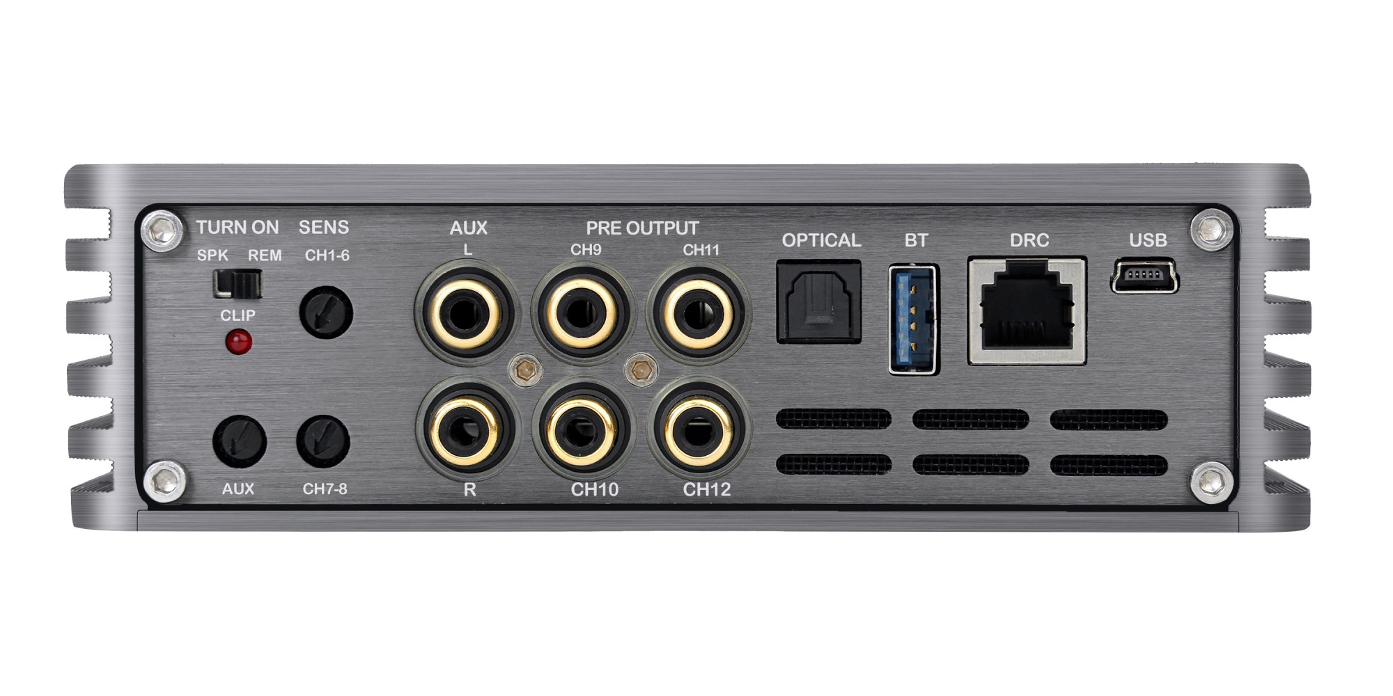 | Počet kanálůZesilovače se rozdělují na: - Monobloky - 2kanálové - 3kanálové - 4kanálové - 5kanálové - 6kanálové - více kanálové Každý kanál slouží na napájení jednoho reproduktoru u koaxialního typu, popř. jedné strany, pokud se jedná o komponentní reproduktory. Zesilovače typu monoblok se používají hlavně na subwoofery. 2kanálové jsou vhodné jak na subwoofery, tak například na přední pár reproduktorů v autě. 3kanálové se používá na přední nebo zadní reproduktory + subwoofer. 4kanálové se používají na přední + zadní reproduktory nebo 1 pár reproduktorů + subwoofer. 6 nebo 5kanálové se používají na 2 páry reproduktorů + subwoofer, nejčastěji. Můstkování znamená zapojení zesilovače do můstku, kdy se použije + pól z jednoho kanálu a - pól z druhého kanálu. Ve většině případů to bývá na zesilovači znázorněné jako "BRIDGED". | 8 |