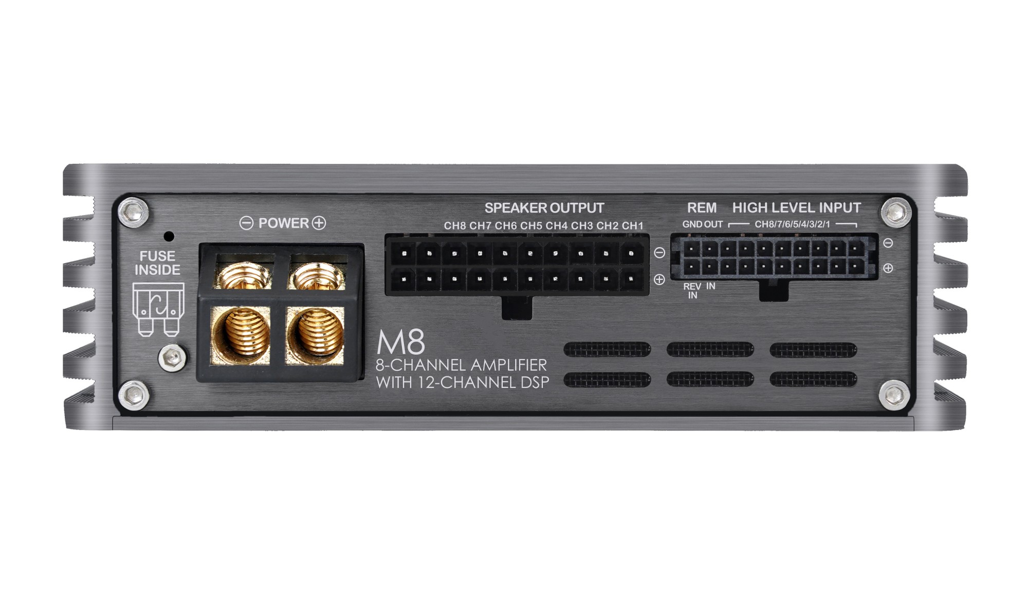 Musway M8 představuje novou referenci v rámci DSP zesilovačů této značky a posouvá celou M-sérii na vyšší úroveň. Jde o vysoce výkonný 8kanálový zesilovač s integrovaným 12kanálovým DSP procesorem, který je navržen pro komplexní audio systémy a náročné instalace. Konstrukčně vychází z osvědčené platformy Musway, ale přináší zásadní posun ve výkonu, výbavě i možnostech ladění. Specifickým prvkem jsou dva výrazně výkonnější kanály, které umožňují přímé napájení subwooferu nebo náročnějších reproduktorů bez nutnosti externího zesilovače. Díky široké konektivitě, pokročilému DSP a podpoře moderního příslušenství je M8 ideálním řešením pro špičkové instalace bez kompromisů. Samozřejmostí je integrace do moderních vozidel včetně vysokourovňových vstupů s EPS®, digitálních vstupů a široké konektivity.