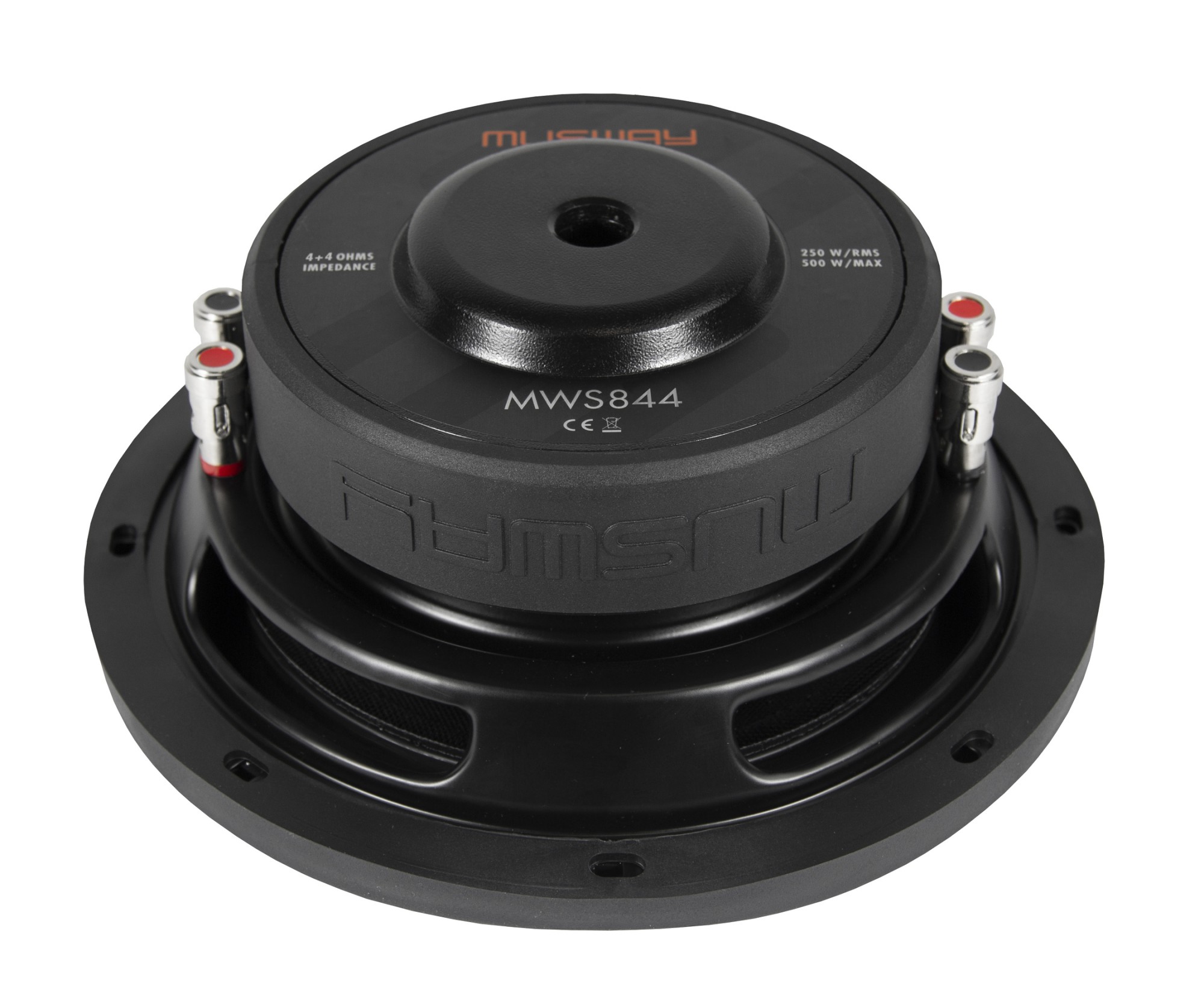 Musway MWS844 je 8" subwoofer v plochém provedení, navržený pro instalace s omezenou montážní hloubkou, kde klasické subwoofery nelze použít. Díky své konstrukci umožňuje realizaci ozvučnic v místech, kde je nedostatek prostoru, například ve dvojité podlaze, bočnicích nebo jiných skrytých instalacích. I přes velmi kompaktní rozměry si zachovává schopnost reprodukovat plnohodnotný basový základ a představuje praktické řešení pro náročnější instalace. Konstrukce subwooferu je přizpůsobena právě nízké zástavbové hloubce bez výrazného omezení výkonu. Membrána ze sklolaminátu s karbonovou strukturou zajišťuje vysokou pevnost a stabilitu i při větším zatížení, zatímco optimalizované zavěšení a konstrukce koše umožňují dostatečný zdvih. Díky tomu nabízí subwoofer vyvážený a kontrolovaný basový projev vhodný jak pro každodenní poslech, tak i pro dynamičtější hudbu. MWS844 je ideální volbou pro instalace, kde je prioritou kombinace kompaktních rozměrů, kvality zvuku a flexibility. Umožňuje stavbu menších ozvučnic bez zásadních kompromisů a otevírá možnosti řešení tam, kde by použití klasického subwooferu nebylo možné.