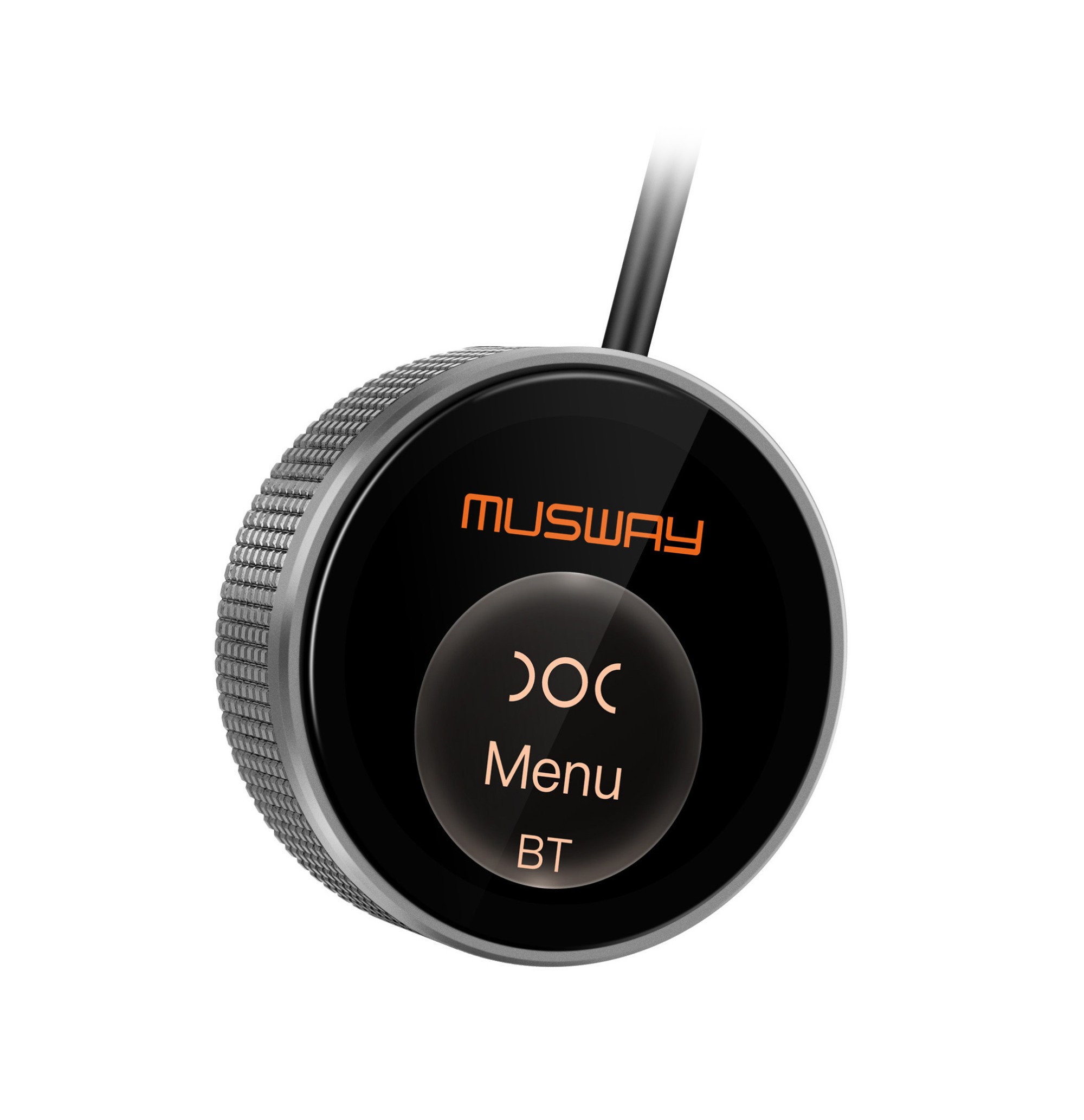 Musway myCON není jen klasický dálkový ovladač, ale plnohodnotné řídicí centrum moderních DSP systémů. Tento prémiový controller, oceněný prestižní cenou EISA, kombinuje pokročilé funkce, špičkové zpracování a intuitivní ovládání v kompaktním těle. Díky precizně opracovanému hliníkovému šasi, otočnému ovladači s funkcí stisku a integrovanému AMOLED displeji představuje výrazný posun oproti běžným ovladačům a posouvá uživatelský komfort na zcela novou úroveň. myCON je navržen jako ideální doplněk k DSP zesilovačům a procesorům Musway, kde umožňuje rychlé a pohodlné ovládání přímo z místa řidiče.