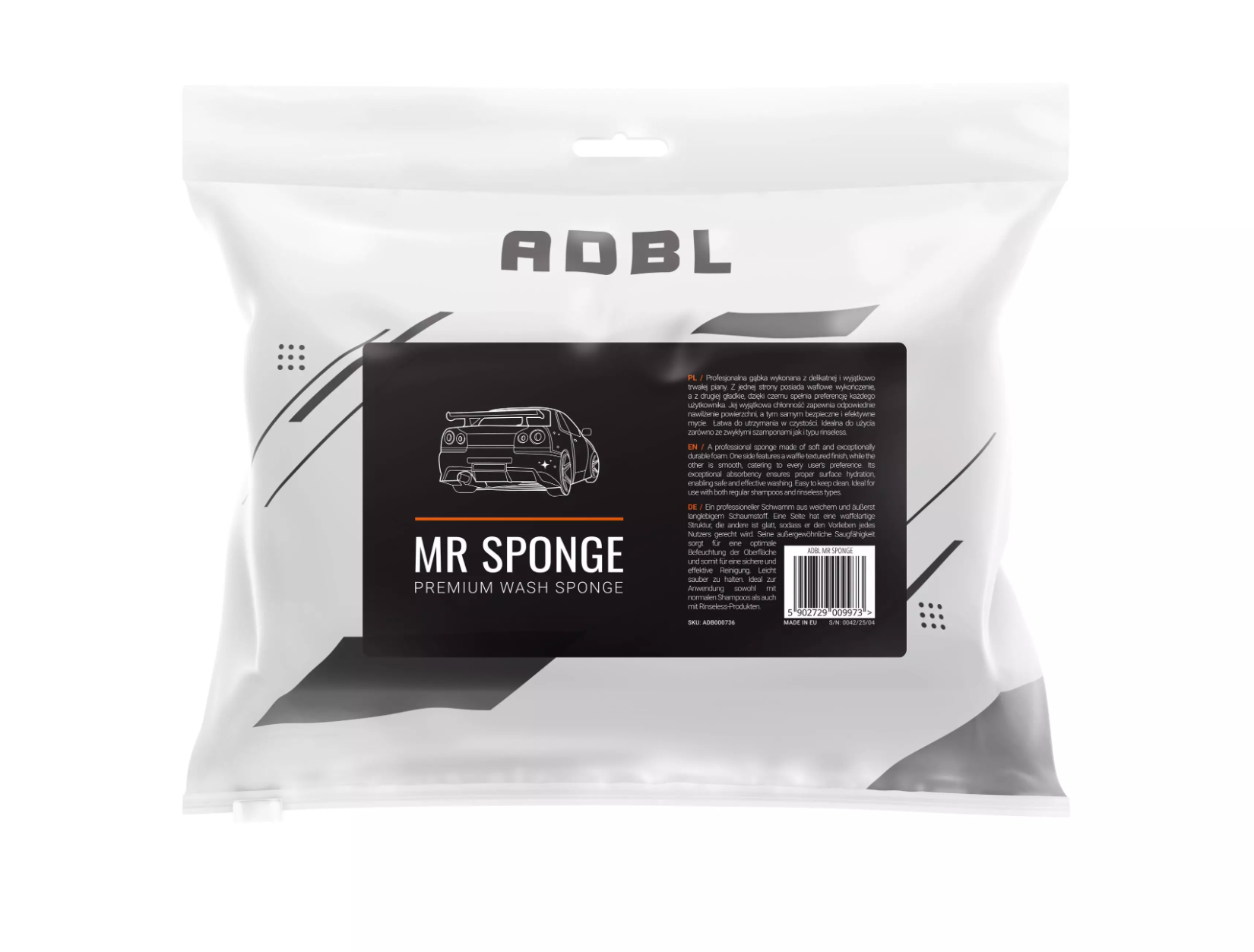 ADBL Mr. Sponge je profesionální mycí houba vyrobená z mimořádně měkké a zároveň extrémně odolné pěny je ideálním pomocníkem pro bezpečné a efektivní mytí povrchů. Díky oboustrannému provedení si ji snadno přizpůsobíte svým preferencím - waflová struktura na jedné straně pomáhá uvolnit nečistoty, zatímco hladká strana zajišťuje šetrné mytí bez rizika poškrábání. Houba se vyznačuje vysokou absorpční schopností, která zajišťuje optimální hydrataci povrchu během mytí. To výrazně snižuje tření a zvyšuje bezpečnost při práci, zejména na citlivých površích. Je vhodná pro použití s klasickými autošampony i bezoplachovými (rinseless) přípravky. Díky snadné údržbě a dlouhé životnosti je ideální volbou jak pro profesionály, tak pro náročné nadšence do detailingu.