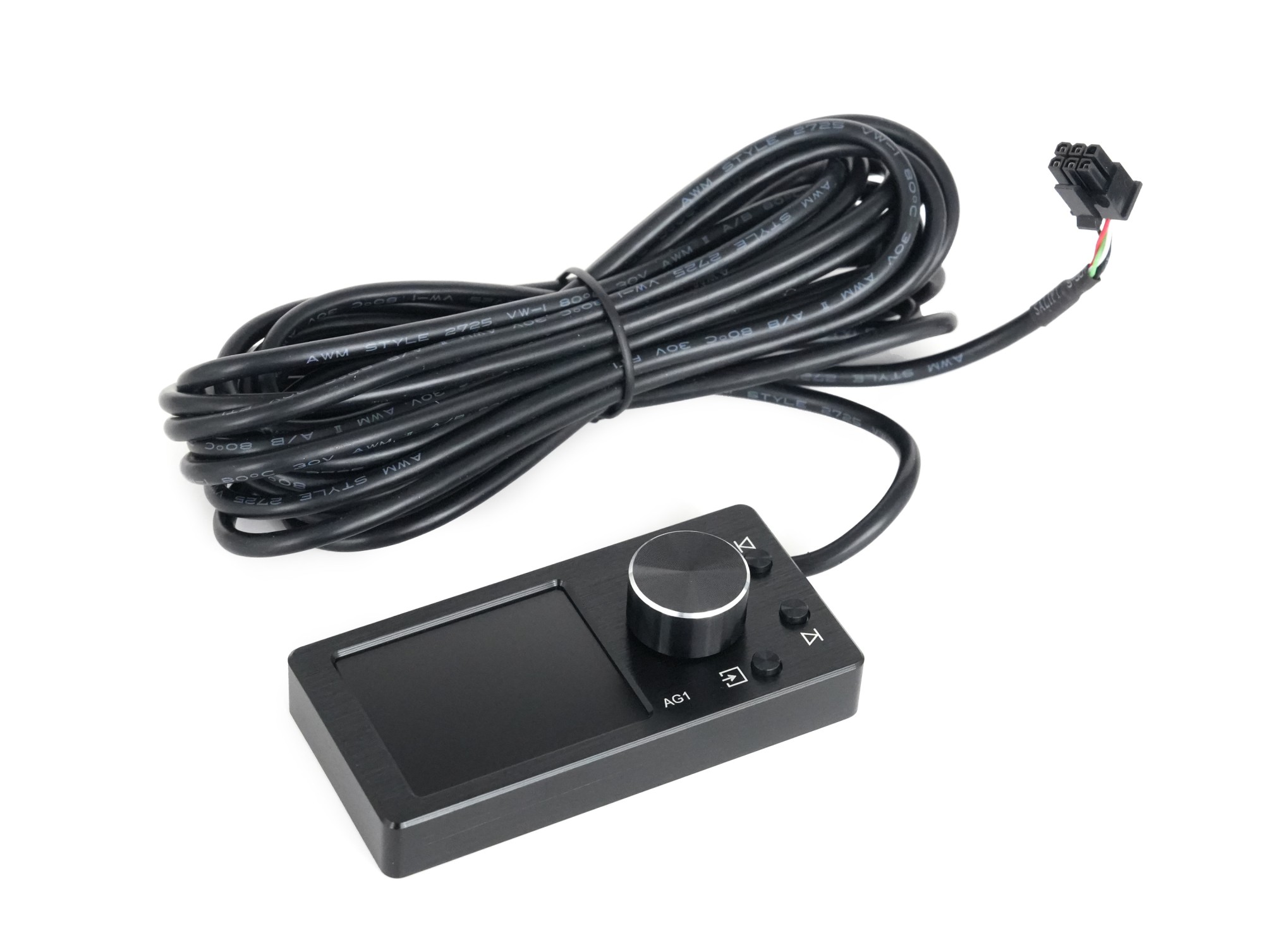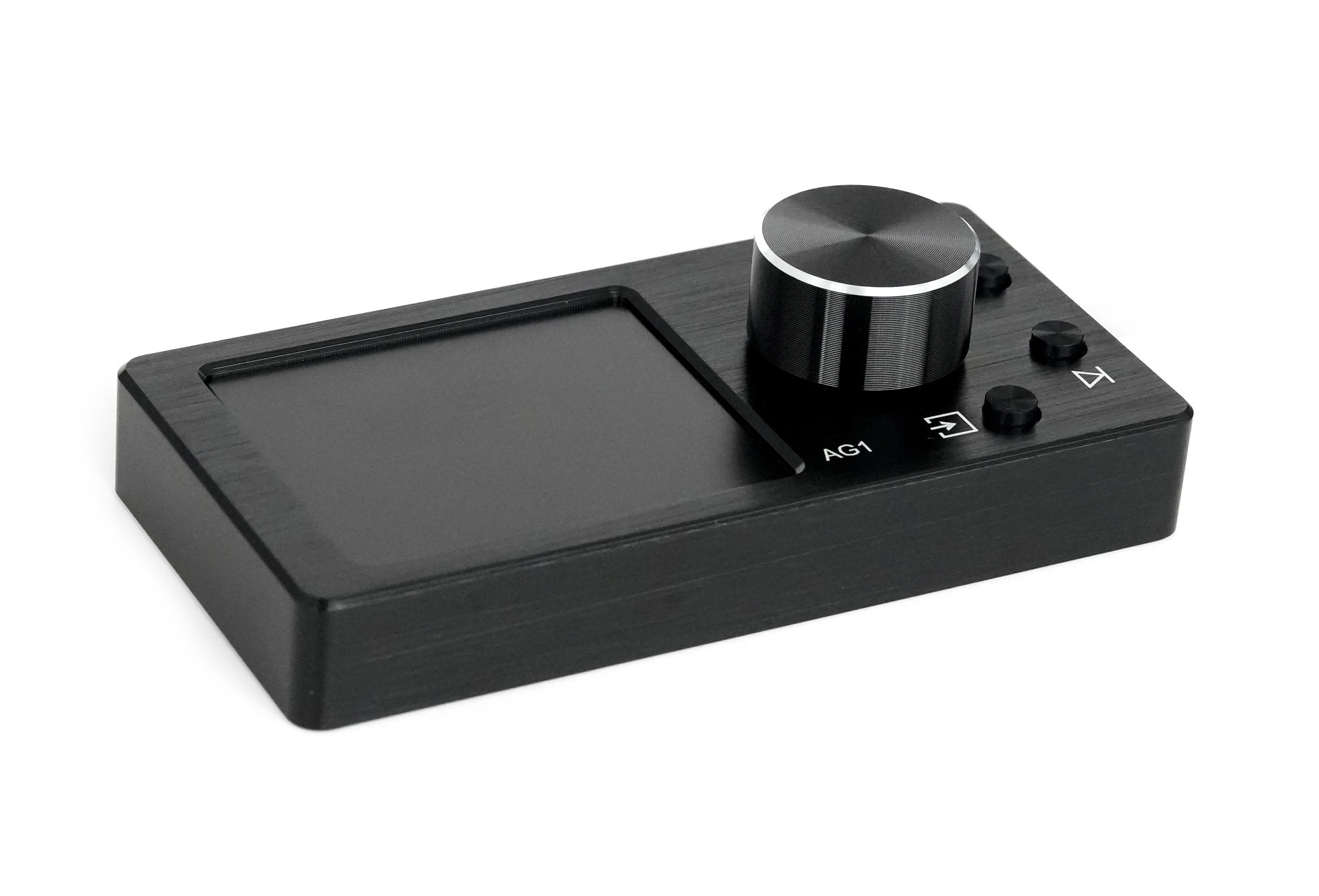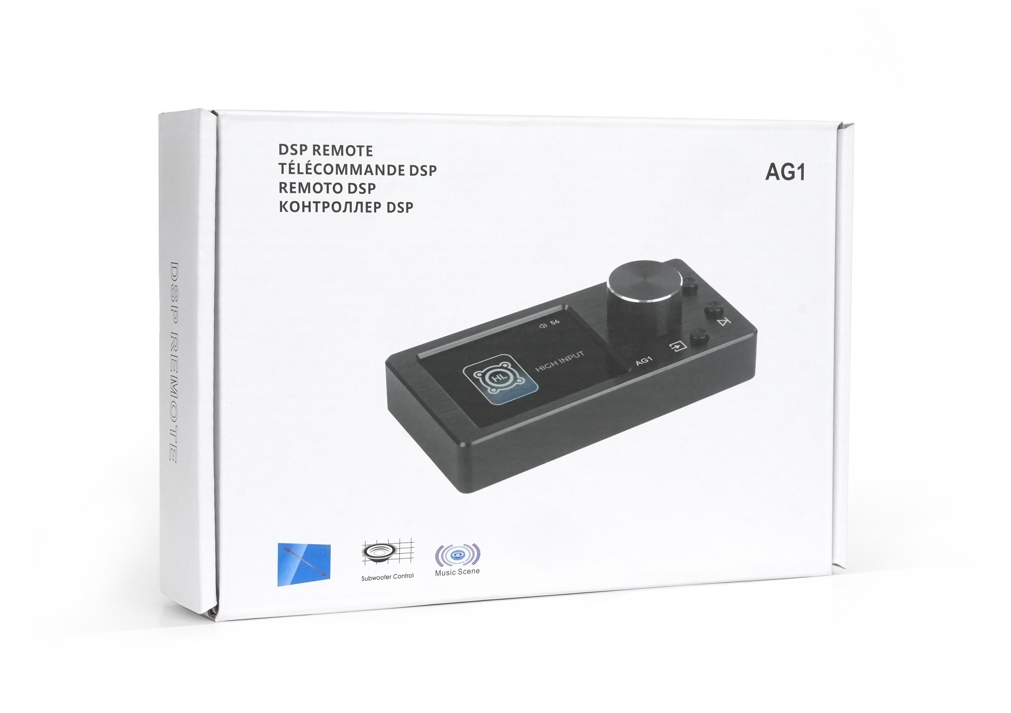 Nakamichi AG1 je externí dálkový ovladač určený pro ovládání kompatibilních DSP procesorů Nakamichi. Slouží jako komfortní rozhraní pro rychlé nastavení hlasitosti, úrovně subwooferu a přepínání uložených scén bez nutnosti připojení k aplikaci nebo počítači. Díky kompaktním rozměrům a integrovanému displeji je vhodný pro skrytou i viditelnou montáž v interiéru vozu. Ovladač je vybaven 2" HD displejem, který zobrazuje aktuální zdroj signálu, hlasitost, číslo scény a informace o přehrávané skladbě. Centrální otočný ovladač slouží pro plynulé nastavení hlavní hlasitosti, po přepnutí také hlasitosti subwooferu. Krátkým stiskem lze systém ztlumit (mute), dlouhým stiskem se aktivuje režim nastavení subwooferu. Samostatná tlačítka umožňují přepínání skladeb, volbu zdroje signálu a změnu DSP scén. Přepínání scén je řešeno dlouhým stiskem tlačítka po dobu cca 3 sekund, následně lze krátkým stiskem tlačítek předchozí / další skladba okamžitě přepínat mezi uloženými scénami a přímo je načíst. To je ideální například pro rychlé přepnutí mezi denním poslechem, hlasitějším režimem nebo demo nastavením.