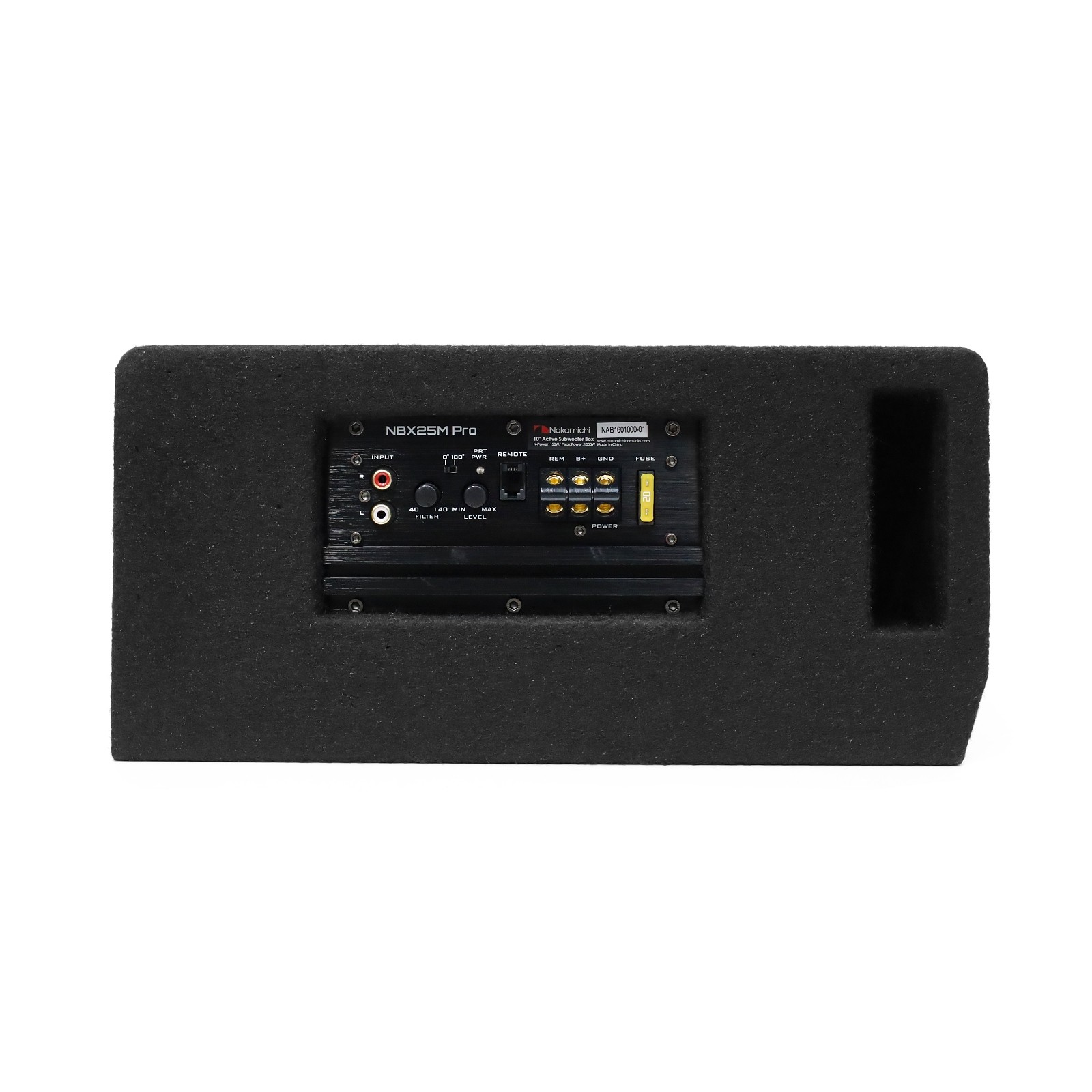 Aktivní subwoofer Nakamichi NBX25M Pro disponuje subwooferem o průměru 10", výkonem 150 W RMS a v dané cenové kategorii velmi kvalitním zvukem. Poctivě zpracovaná bassreflexová ozvučnice kompaktních rozměrů se hodí i do velmi stísněných prostor, kde zabere při svém optimálním umístění subwooferem dolů minimum prostoru. V balení najdete i dálkové ovládání, se kterým si výkon můžete nastavovat přímo z pozice řidiče. V dané cenové kategorii se jedná o velmi kvalitní možnost, jak posílit dynamiku ozvučení při minimálních nárocích na velikost ozvučnice.