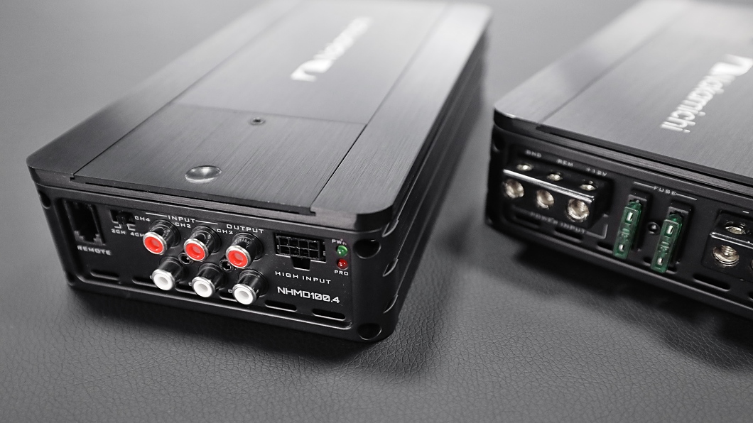 Nakamichi NHMD100.4 je čtyřkanálový digitální zesilovač s vysokým výkonem 100 W RMS na kanál a přitom poměrně kompaktními rozměry. Moderní design se skrytými ovladači nastavení, šasi z broušeného hliníku, dutinkové terminály a samozřejmě kvalita Nakamichi, se kterou se u tohoto tradičního japonského výrobce počítá. Díky technologii Class-D se nemusíte obávat přehřívání zesilovače a můžete jej umístit prakticky kdekoliv. Ve stejném designu lze zakoupit i monoblok a sladit celou aparaturu. Možnost připojení dálkového ovládání i zapojení zesilovače přes vysokoúrovňový vstup.