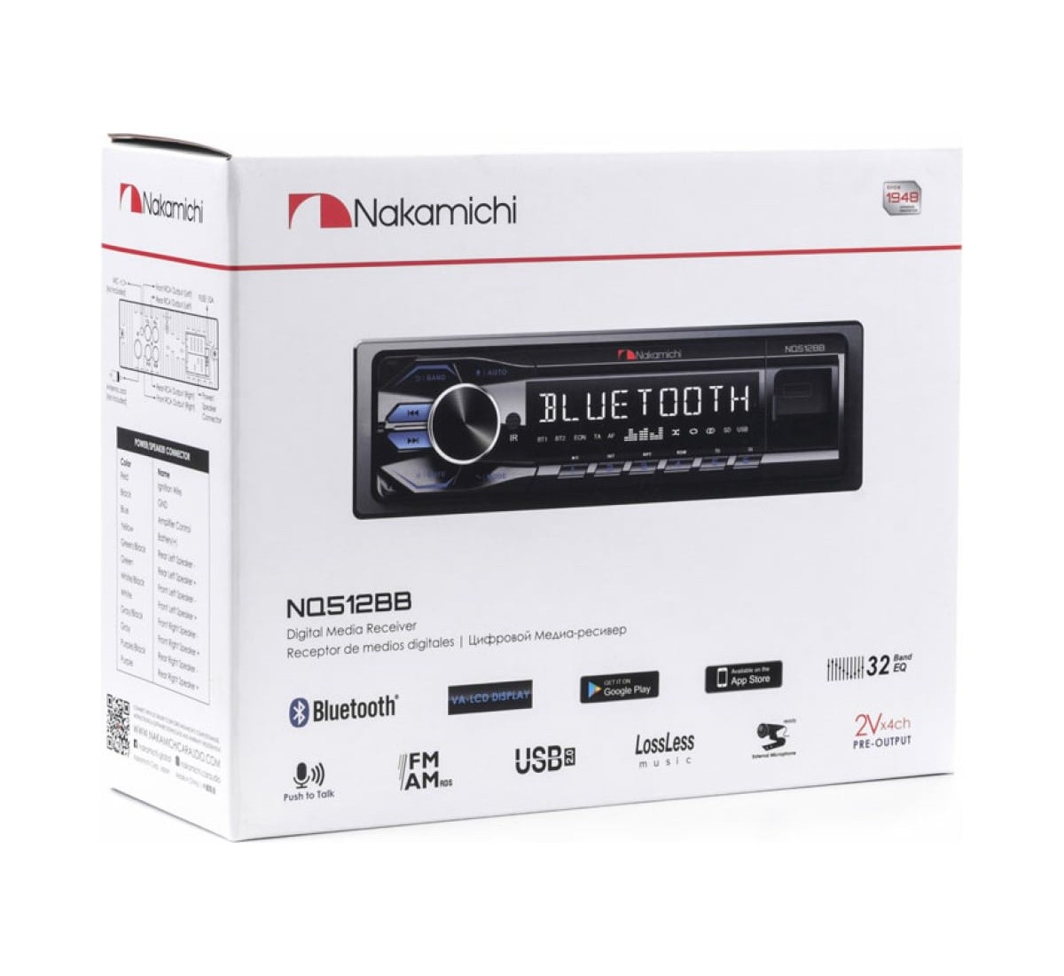Nakamichi NQ512BB je základní model tohoto japonského výrobce pro rok 2023 se standardní výbavou. Vezměte svůj USB disk a zapojte jej do USB portu pro rychlý poslech oblíbených skladeb. Přední port USB přijímá flash disky až do 64 GB a poskytuje nabíjení mobilních zařízení 5V/1A. Alternativně si můžete zvolit pro streamování skladeb pomocí vestavěné funkce Bluetooth. Bluetooth také umožňuje uskutečňovat a přijímat hovory handsfree přes samotný přijímač, místo aby bylo nutné přesouvat pozornost na telefon. Autorádio nedisponuje CD mechanikou, ale čelním vstupem na USB. Podpora formátů zvukových souborů: MP3, WAV, FLAC, WMA. NQ512BR má 2 páry linkových výstupů pro připojení externích zesilovačů. Korekci frekvenční charakteristiky má na starosti 32pásmový ekvalizér. Čelní panel není odnímatelný.Nejzajímavější vlastnosti autorádia Nakamichi NQ512BB