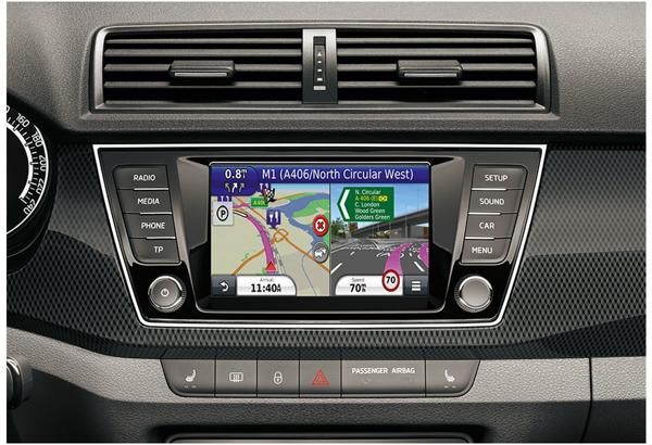 Inovujte svůj vůz Škoda multimediálním systémem Kenwood s navigací. Ovládání navigace pomocí dotykového panelu. Hlasová navigace s názvem silnice (příklad: "odbočte vpravo na Regent Street"). Funkce Lane Assist. 3D památky a budovy.